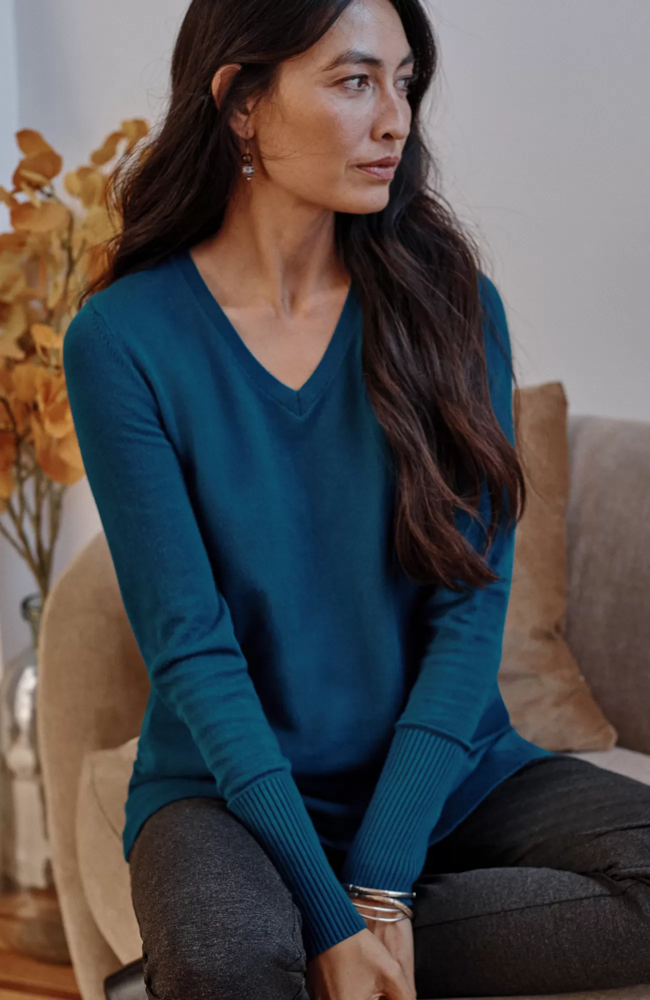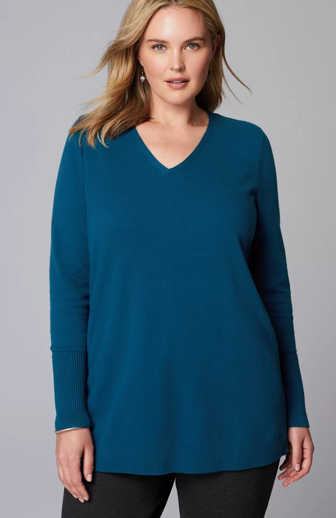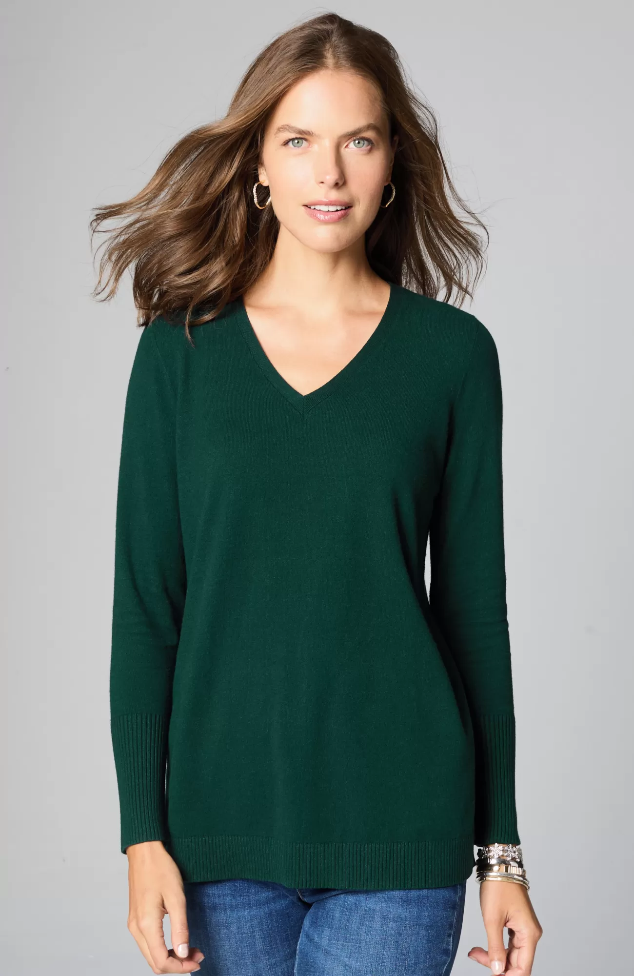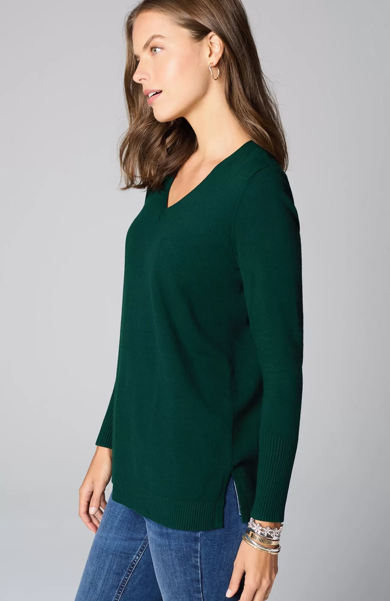 A fall essential that has it all: cozy cotton-rich yarns, a longer length, and a classic ribbed trim at the neckline, cuffs and hem. We especially love the elongated ribbed cuffs—they add extra dimension to this timeless piece. Side vents.