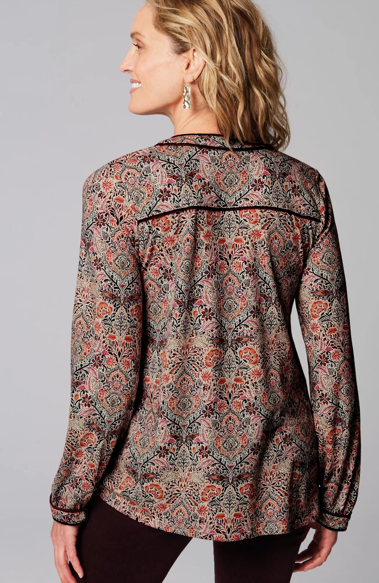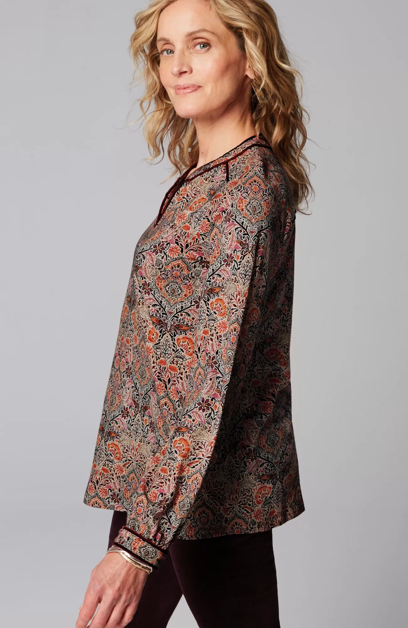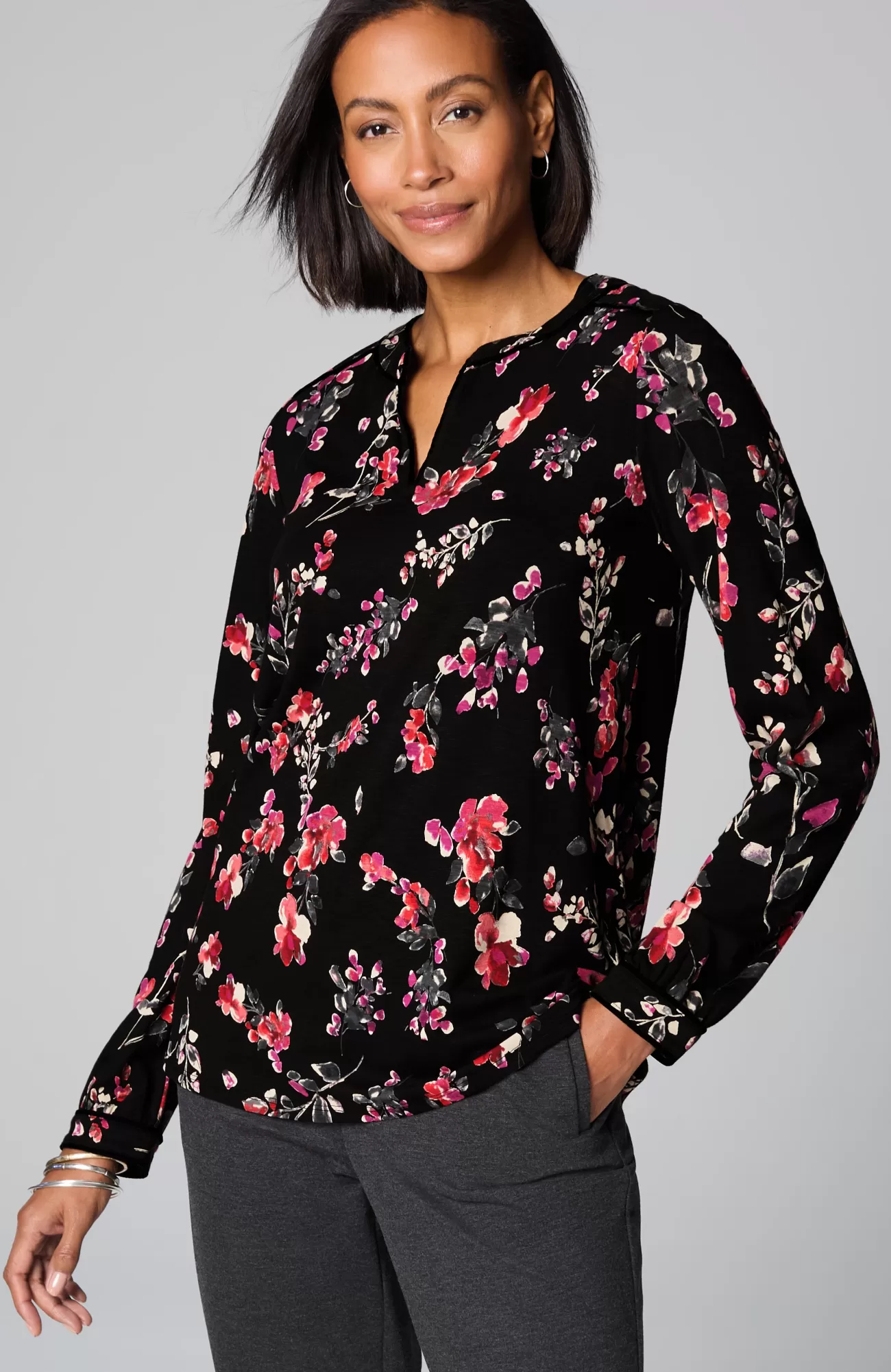 The everyday top with special details to discover—velvet piping trim on the split neckline, yoke and sleeve cuffs. It's designed in the softest blend of cotton and TENCEL™ Modal, so it looks and feels great every day. Functional single-button cuffs.