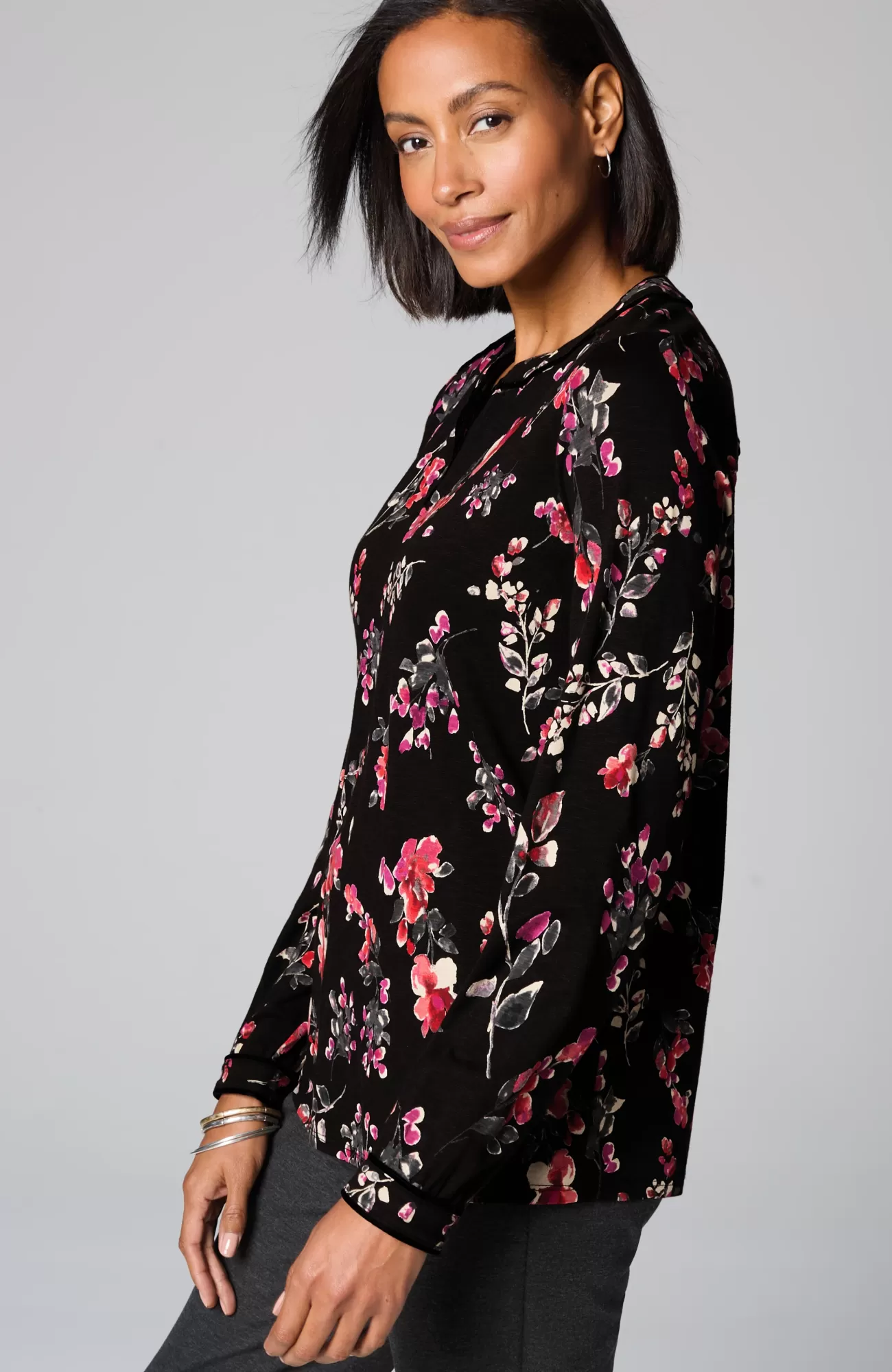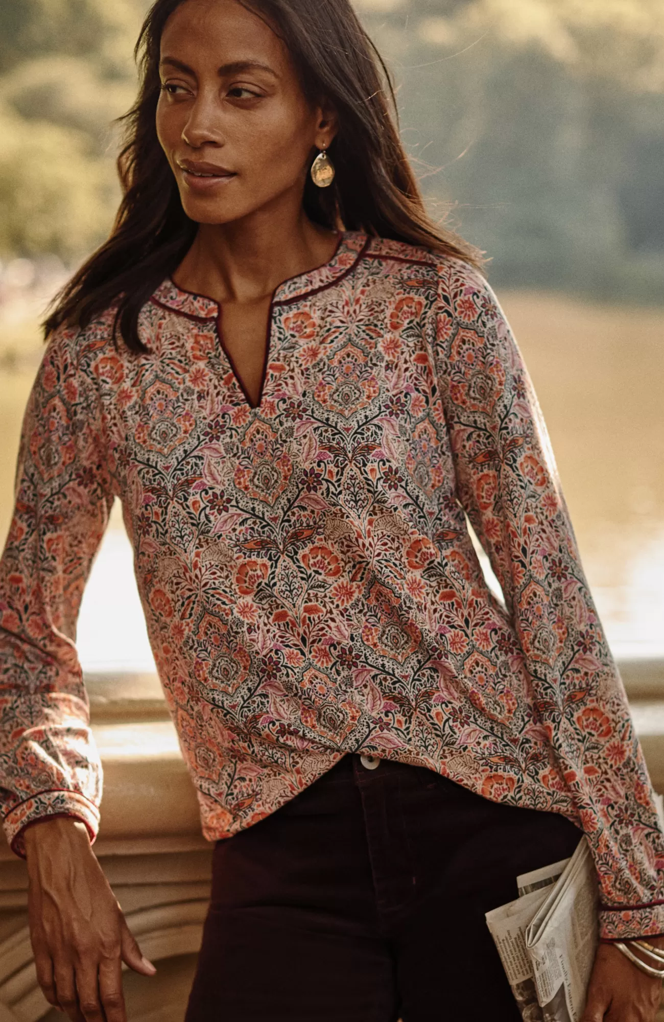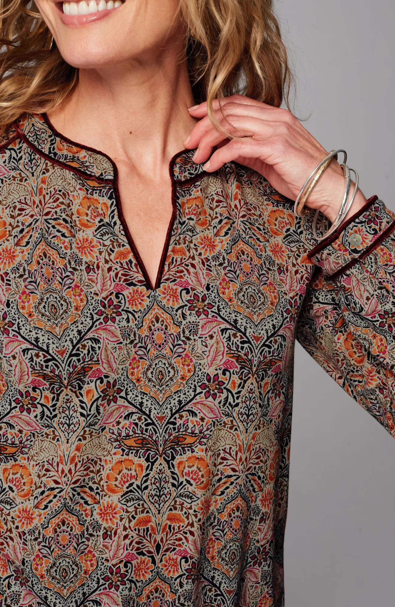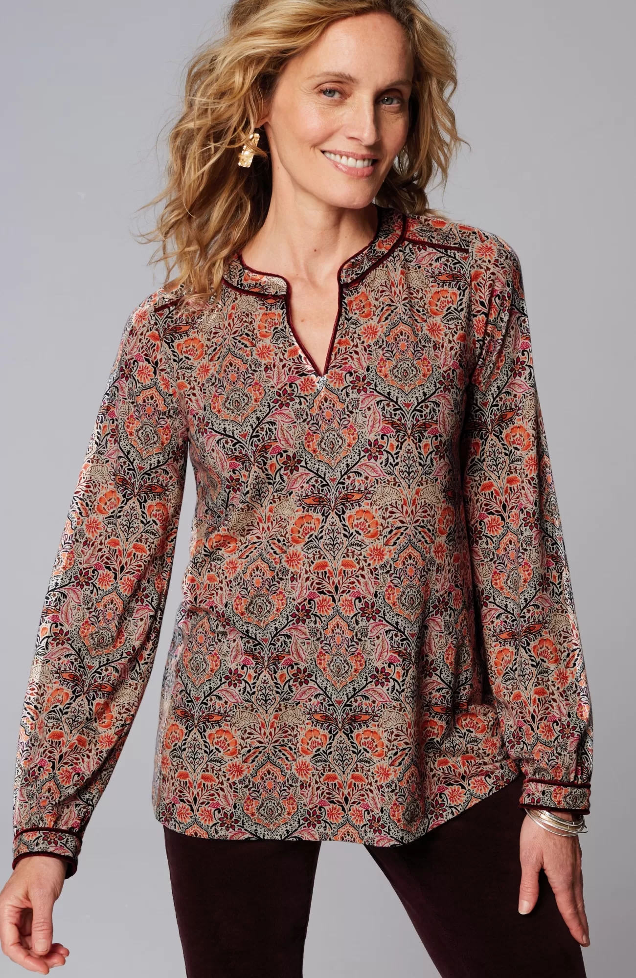 The everyday top with special details to discover—velvet piping trim on the split neckline, yoke and sleeve cuffs. It's designed in the softest blend of cotton and TENCEL™ Modal, so it looks and feels great every day. Functional single-button cuffs.