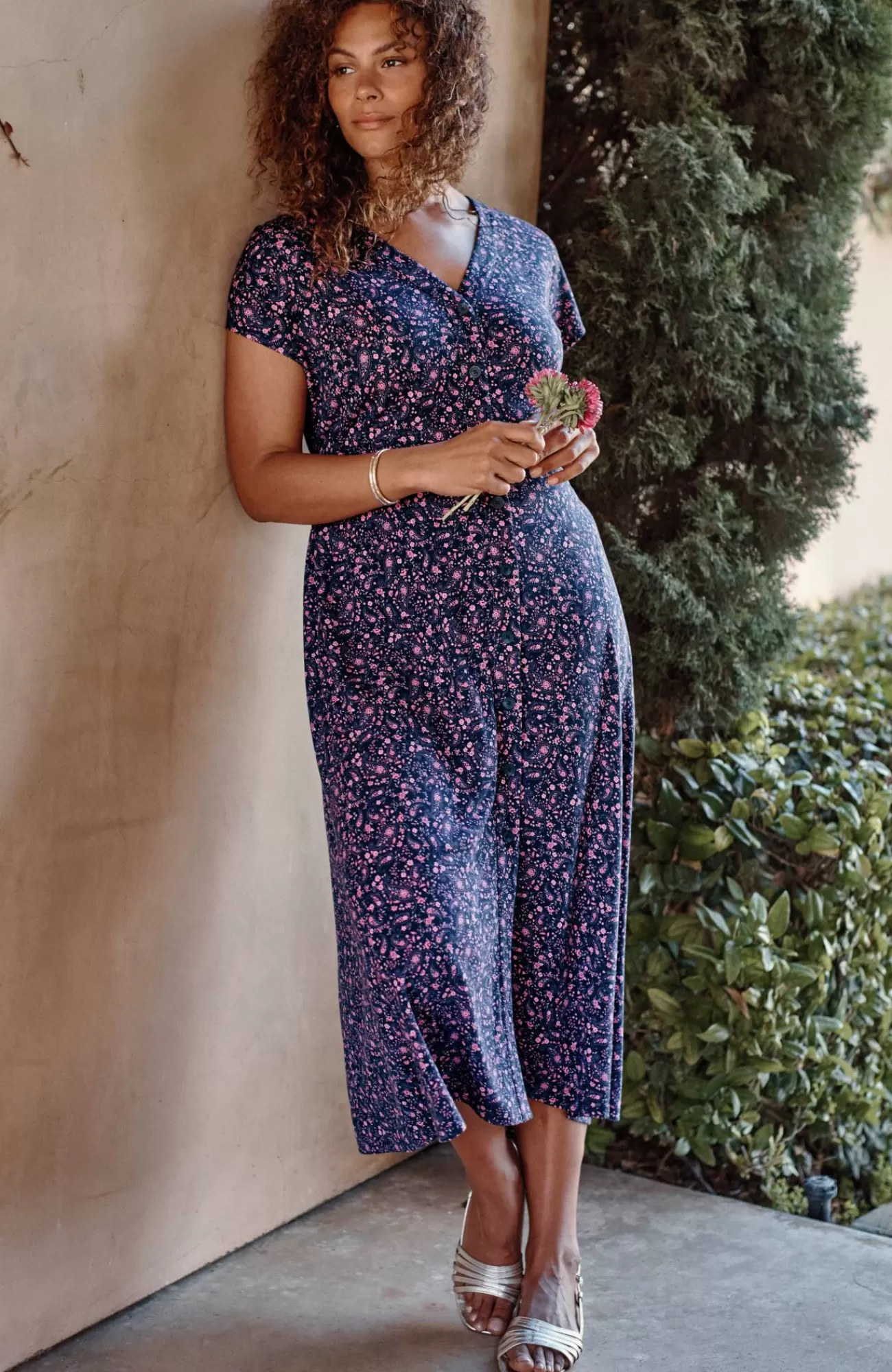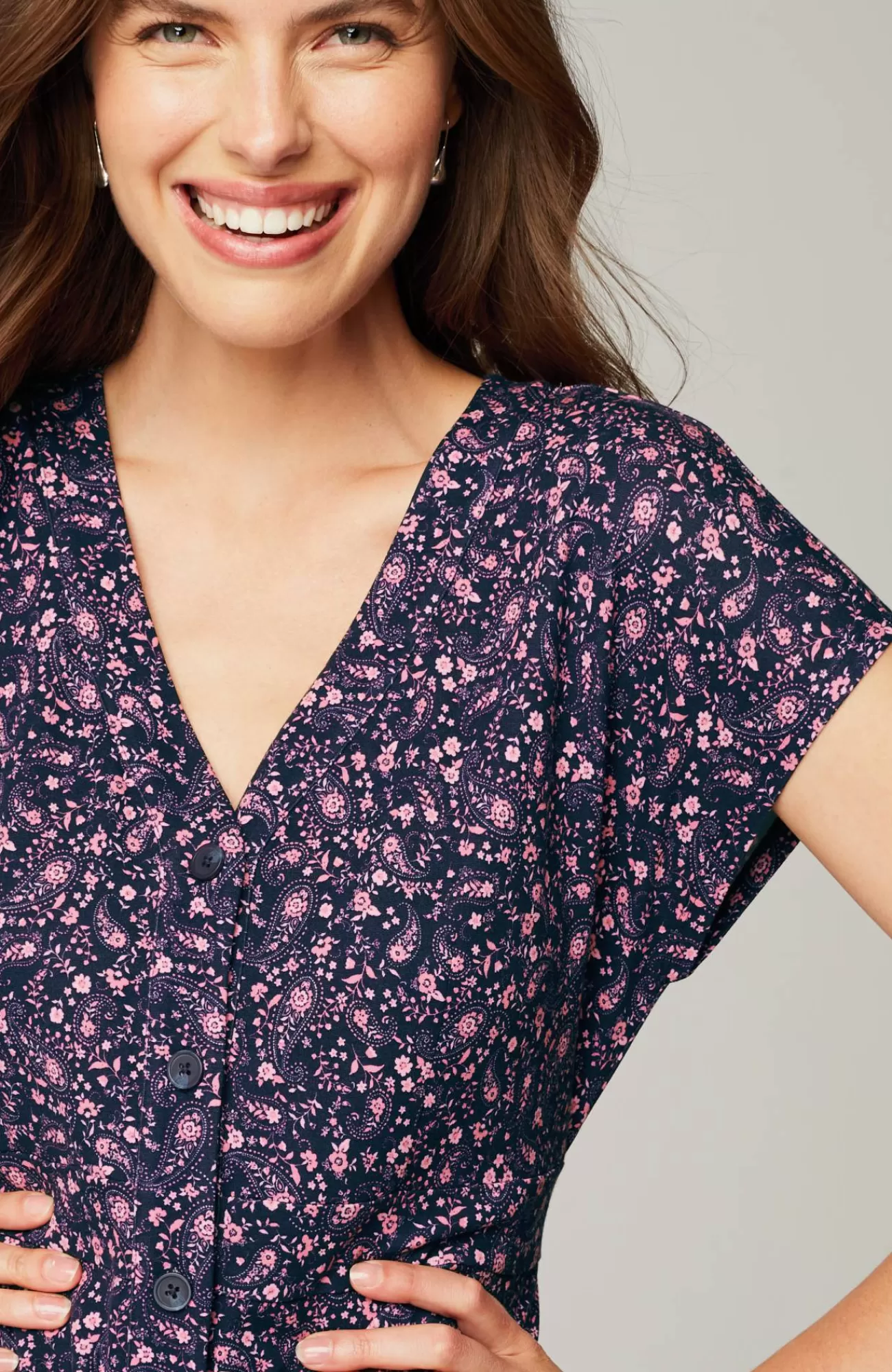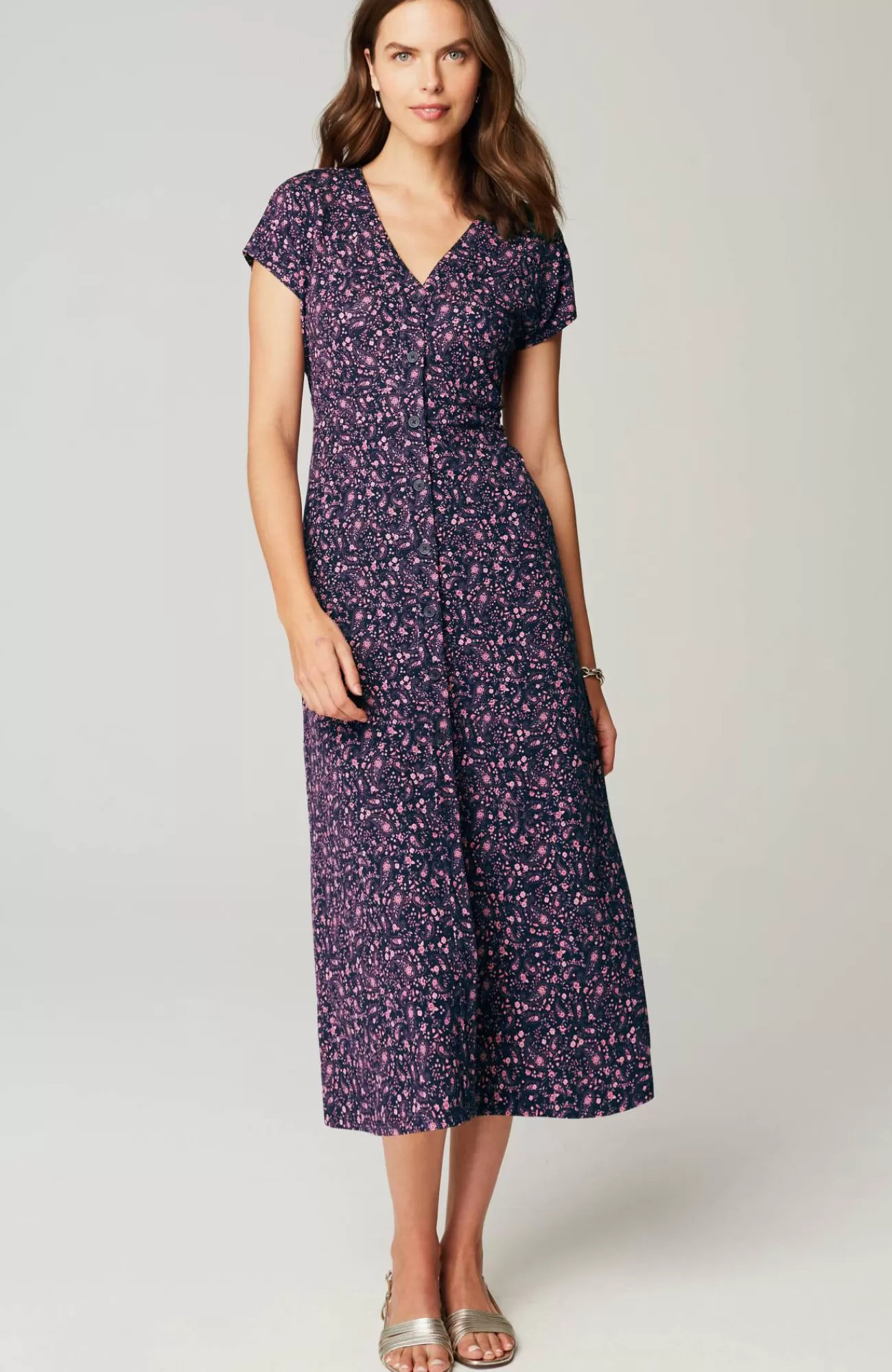 It's everything we want and more from a spring dress: soft rayon blend, tailored button front, classic A-line silhouette and pockets, of course.