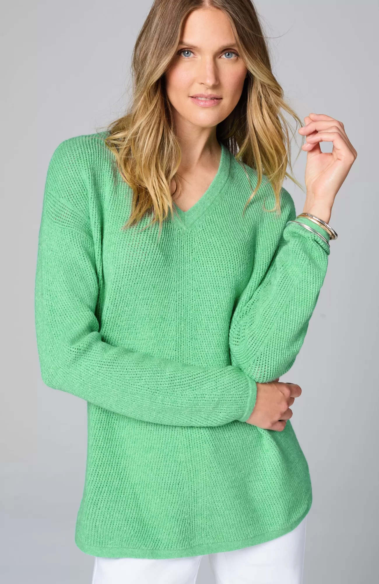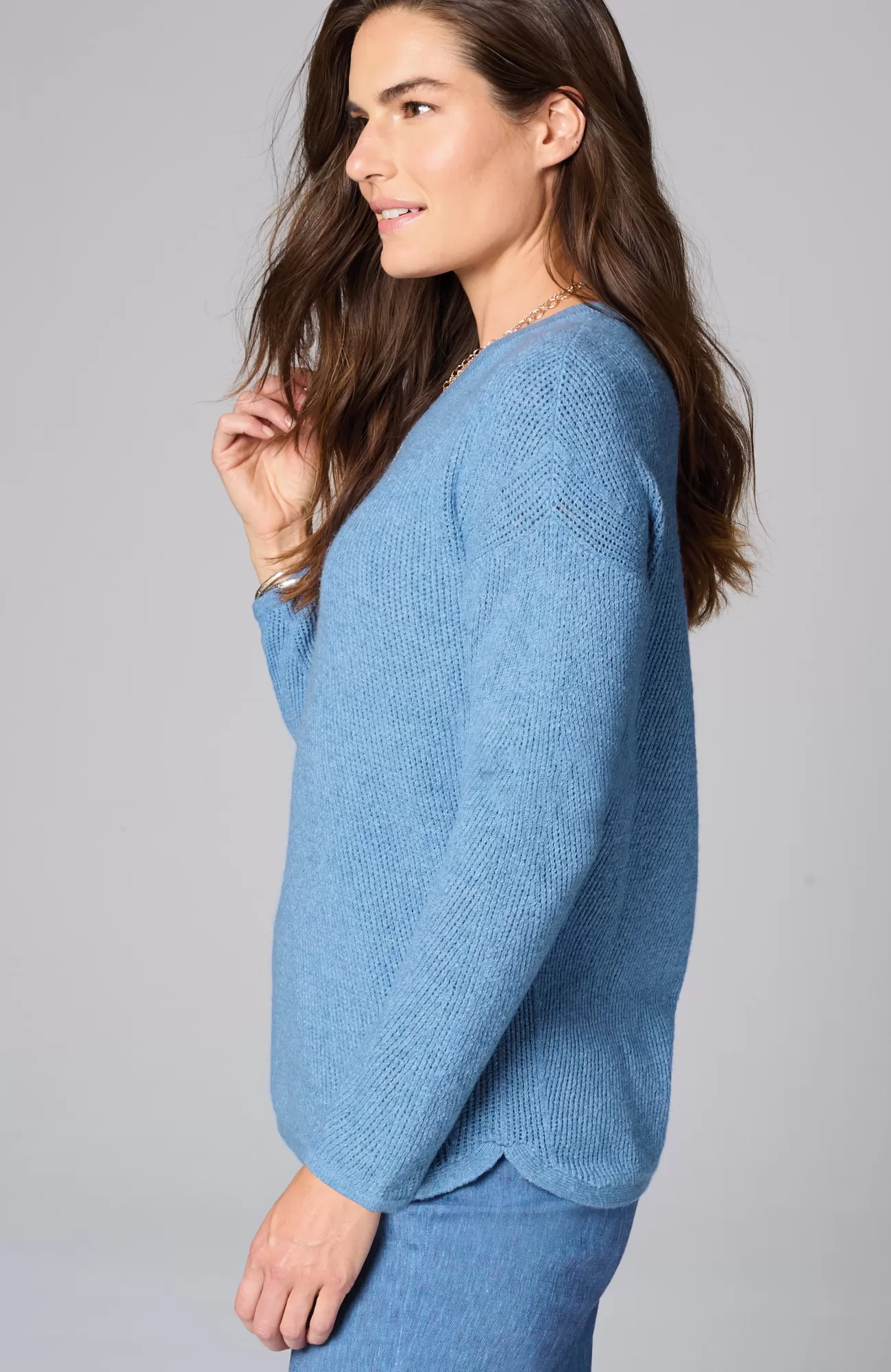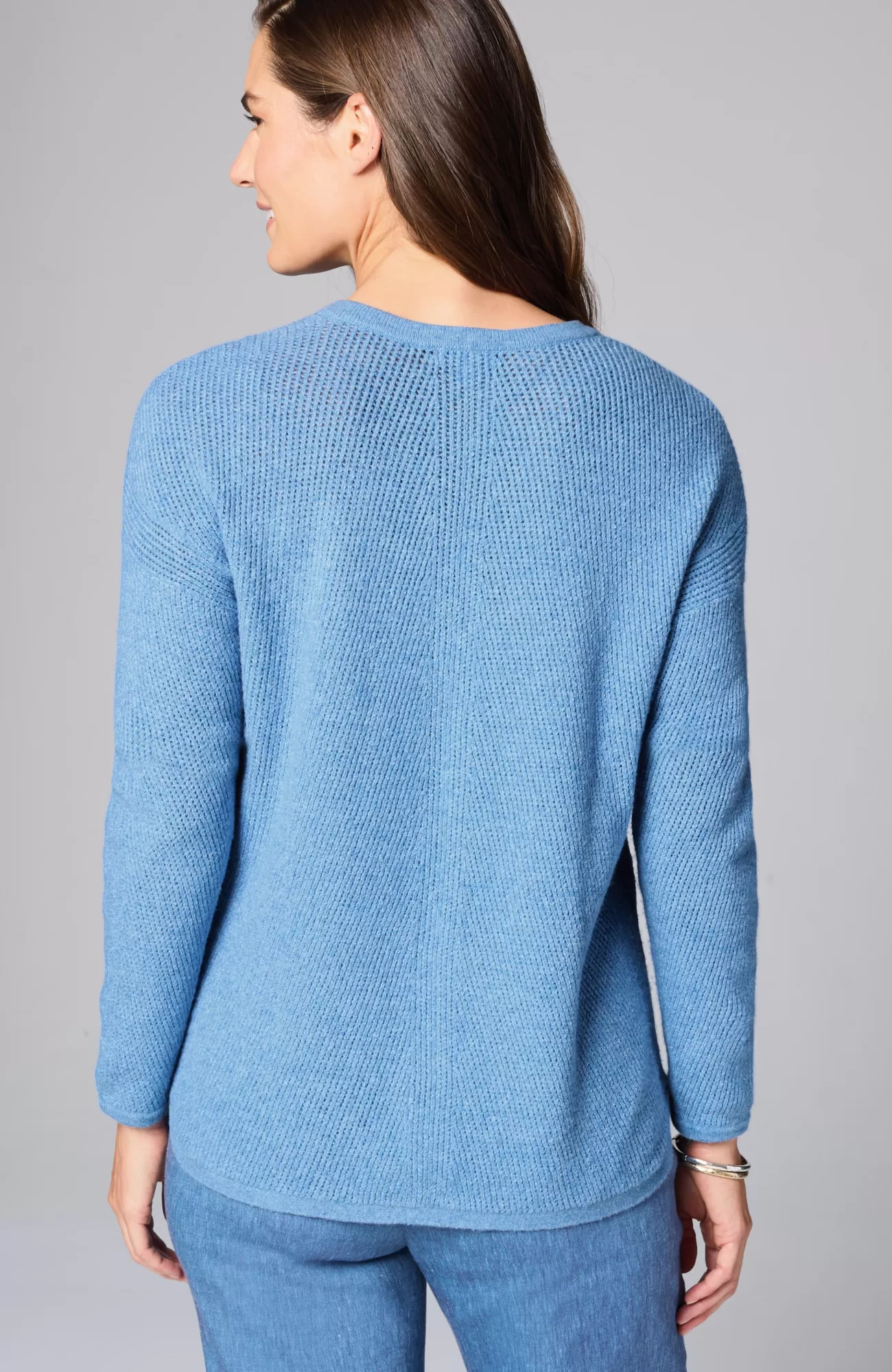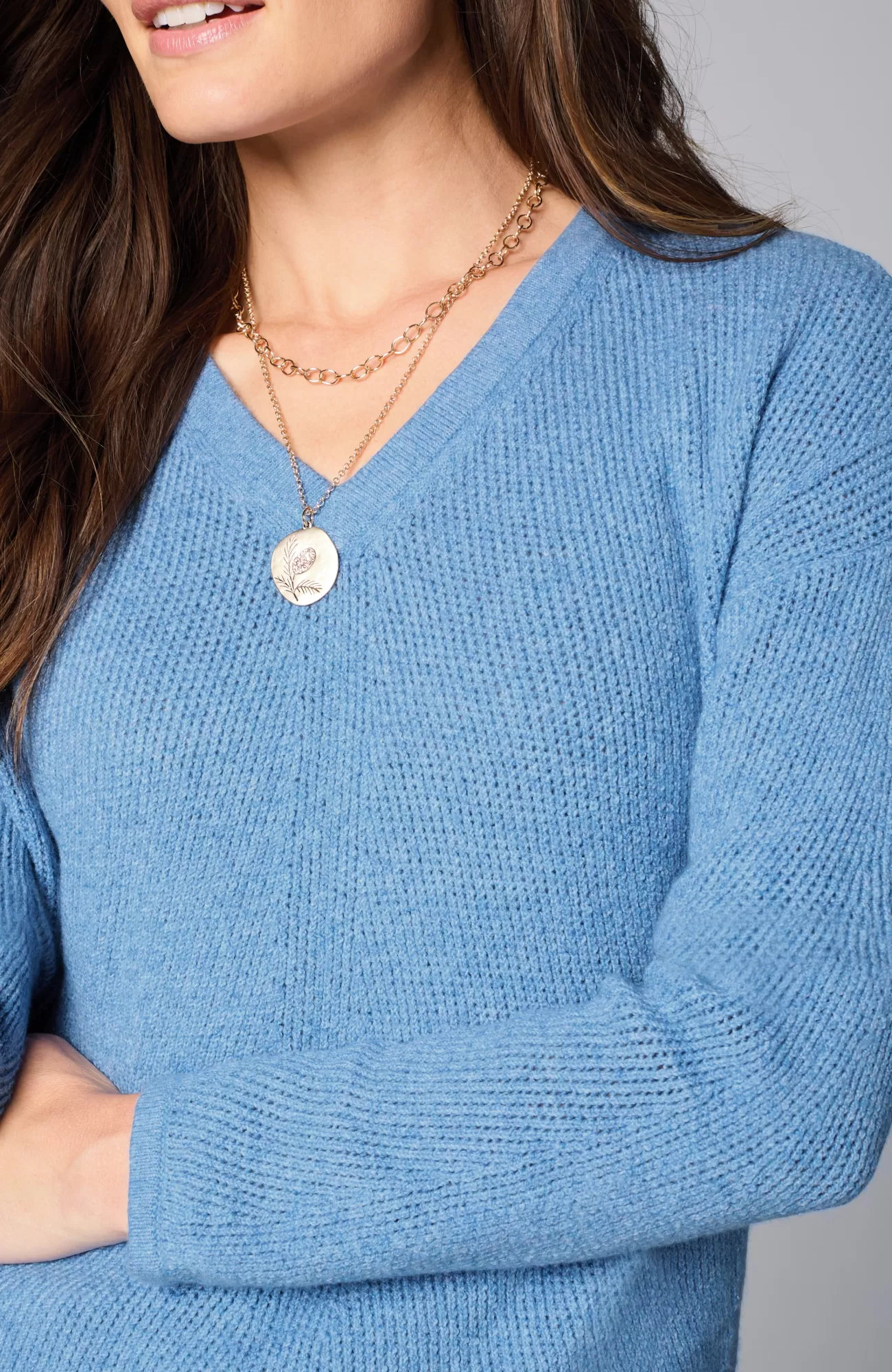 This relaxed sweater is sure to be your new go-to. Designed in a waffle-knit cotton blend with placed texture along the sides, it's just right any day of the week. Dropped shoulders. Rounded shirttail hem.