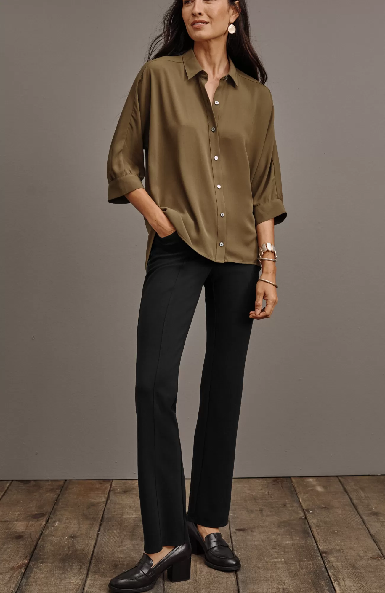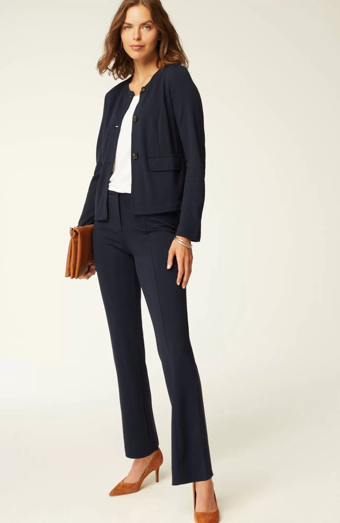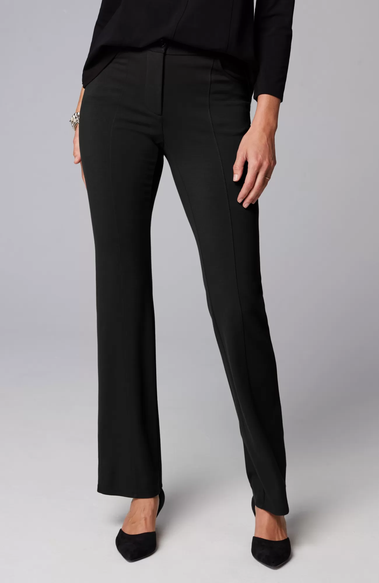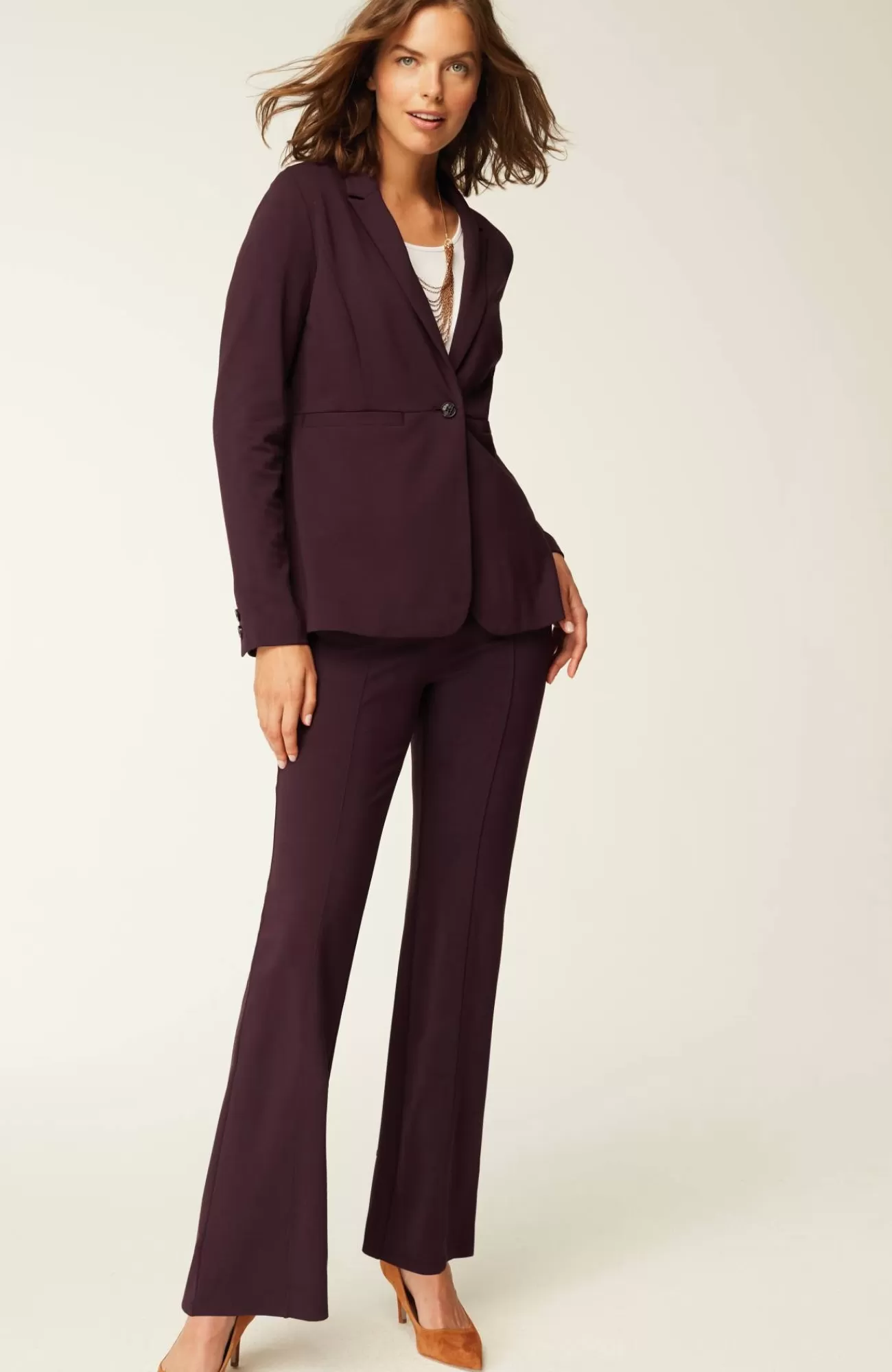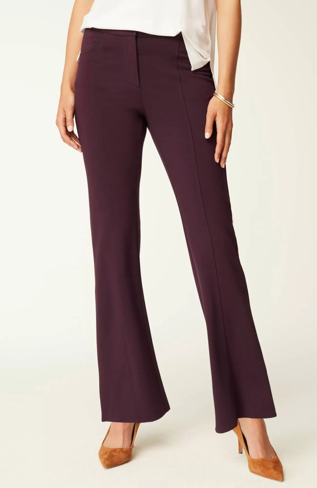 Part of our limited-edition Wearever Works Collection where tailored comfort is perfected in styles that look polished in or out of the office. Elevate your weekdays with our boot-cut trousers in a soft, more substantial rayon-blend jersey knit. The fabric is double-knit so it's slightly structured with a medium weight, a smooth, polished finish and an easy drape. It has all your favorite details like center-front seams, a functional fly, angled pockets and rear welt pockets. Complete the look with our coordinating Wearever double-face jersey blazer.