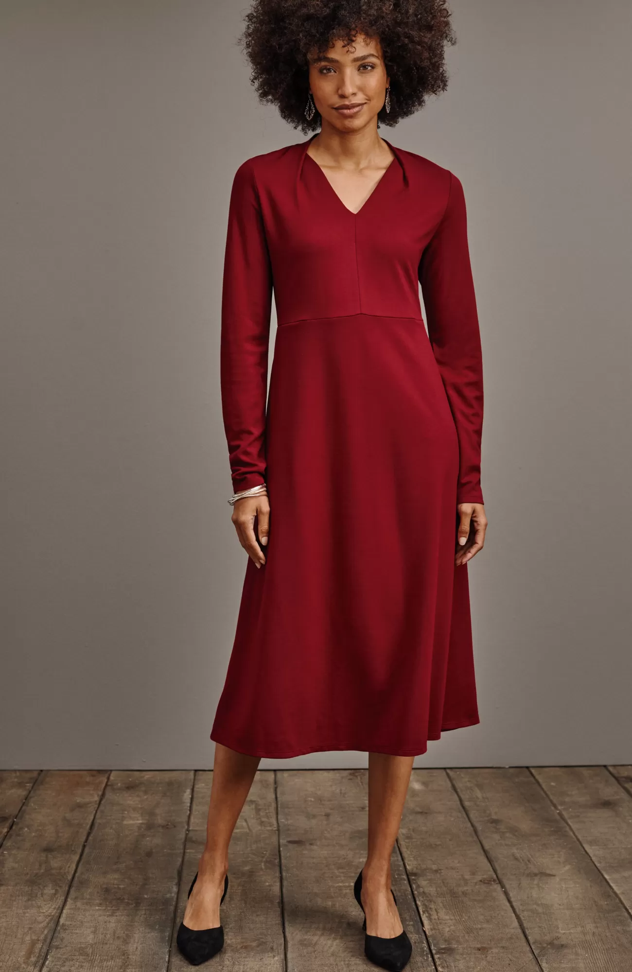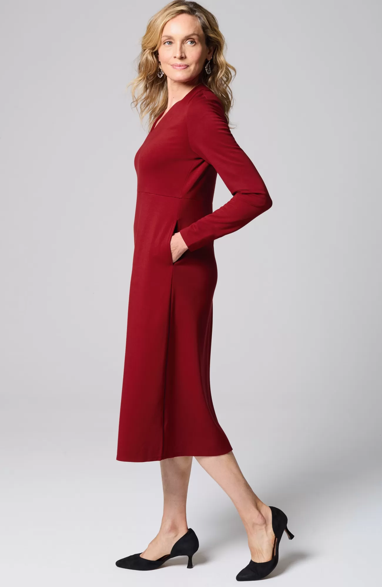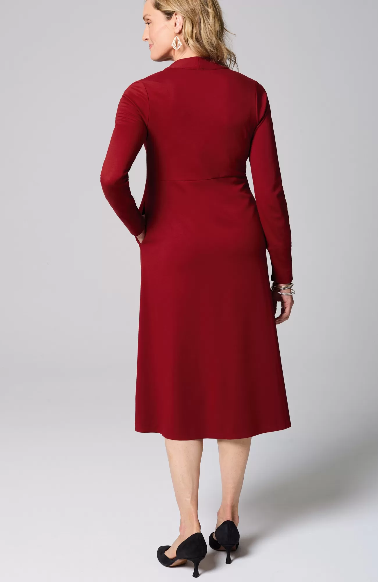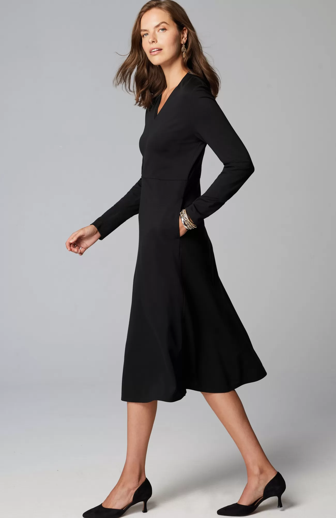 A dress that transcends the seasons. We’ve taken our much-loved fit-and-flare silhouette and added a new, folded V-neckline that feels polished and chic. Made from our soft-yet-structured double-face jersey fabric and finished with onseam pockets. Unlined. Catalog & Online Exclusive.