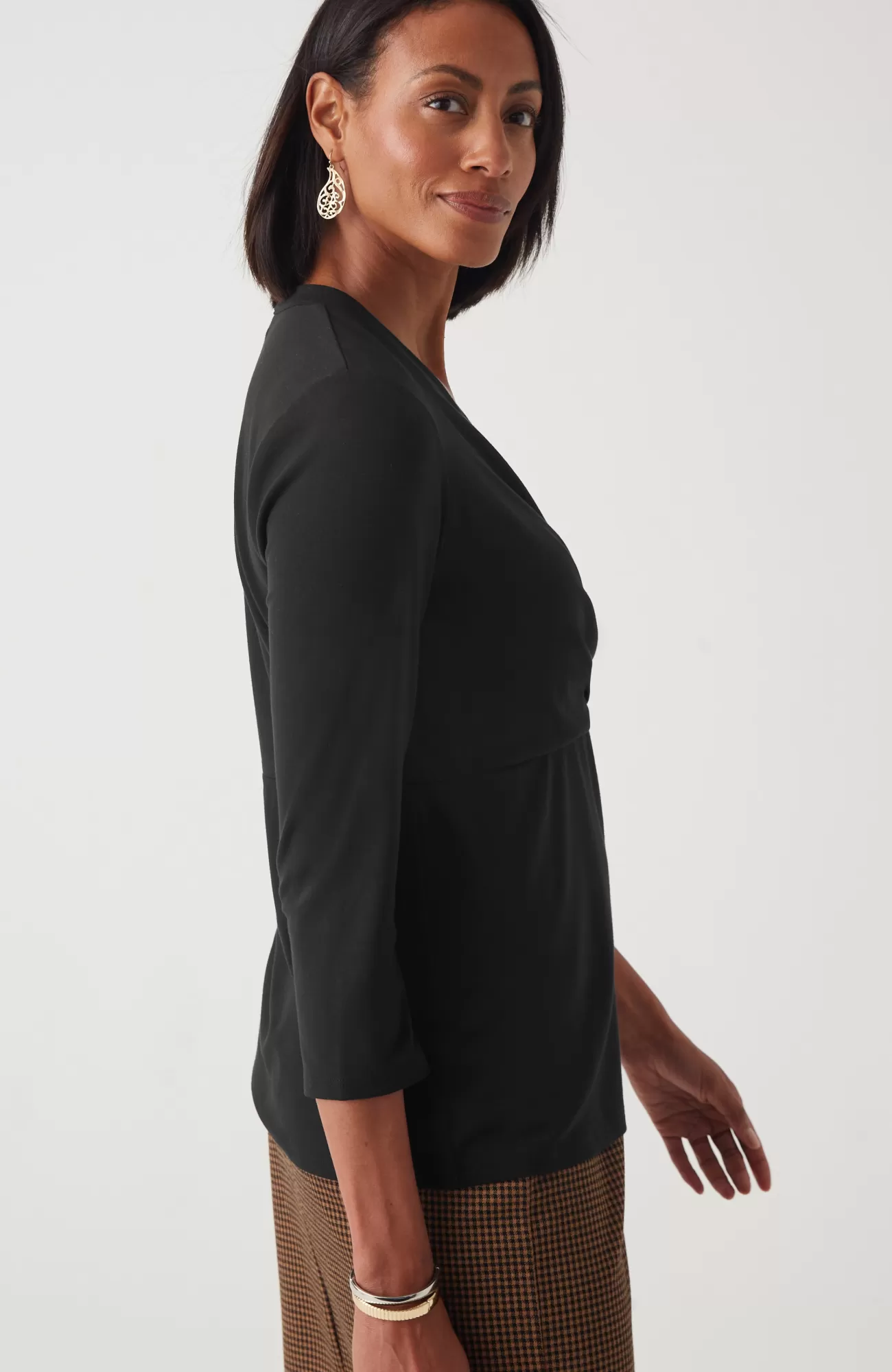 Office ready, party approved. Our smooth draped-knit top has a comfortable fit and an even softer feel. Features a flattering twist at the waist and a bold built-up neckline. Fully lined. Catalog & Online Exclusive.