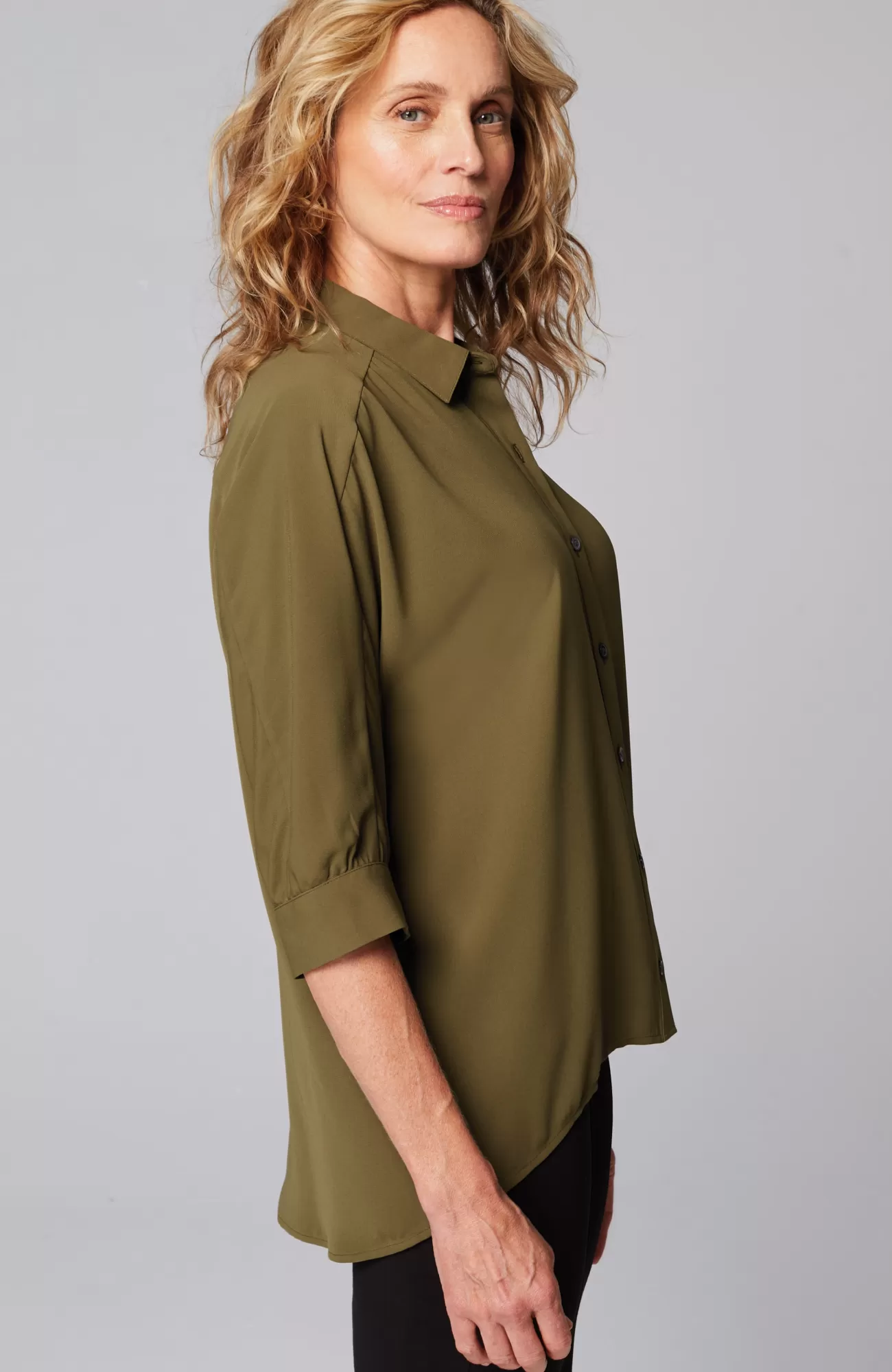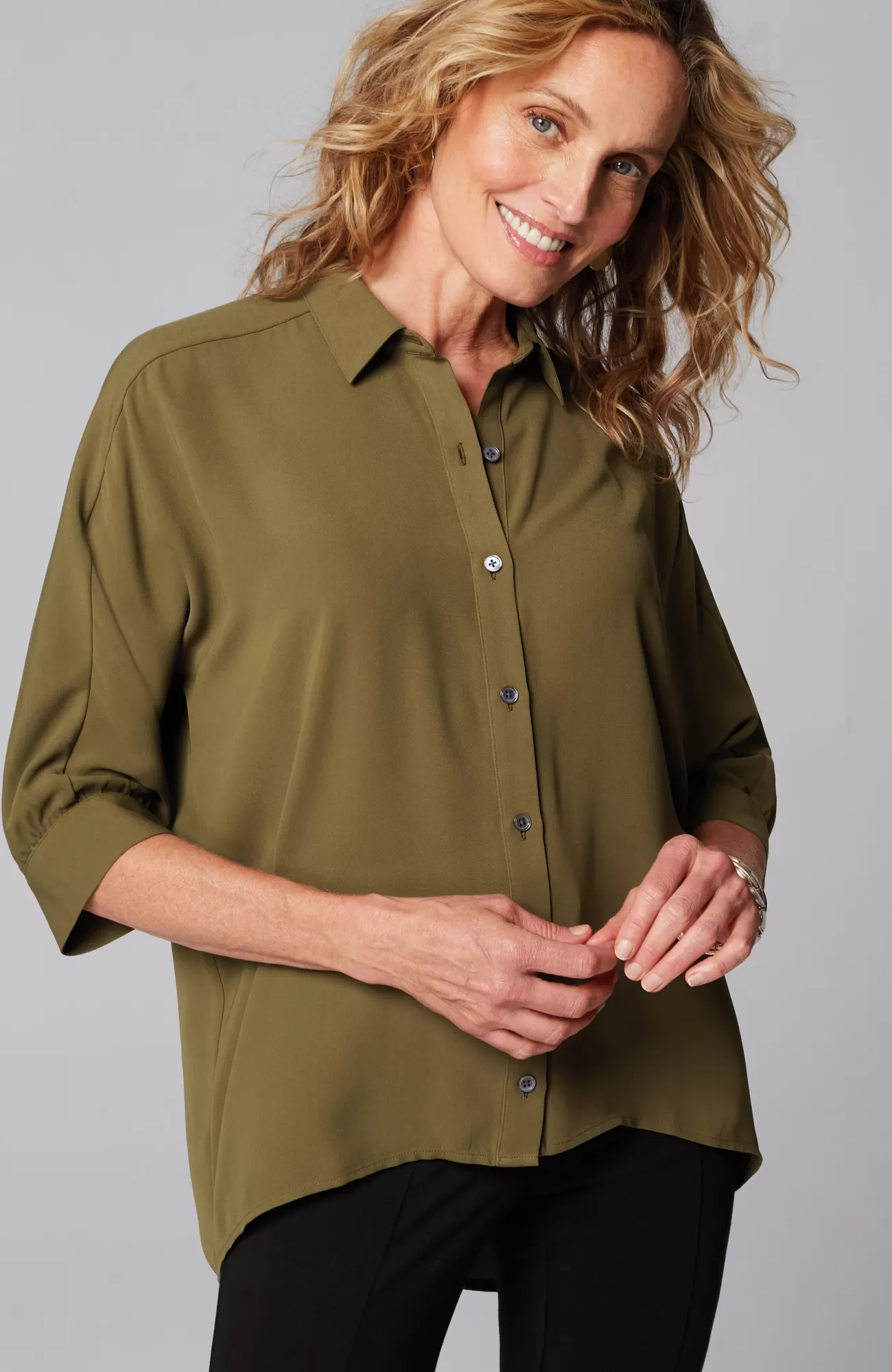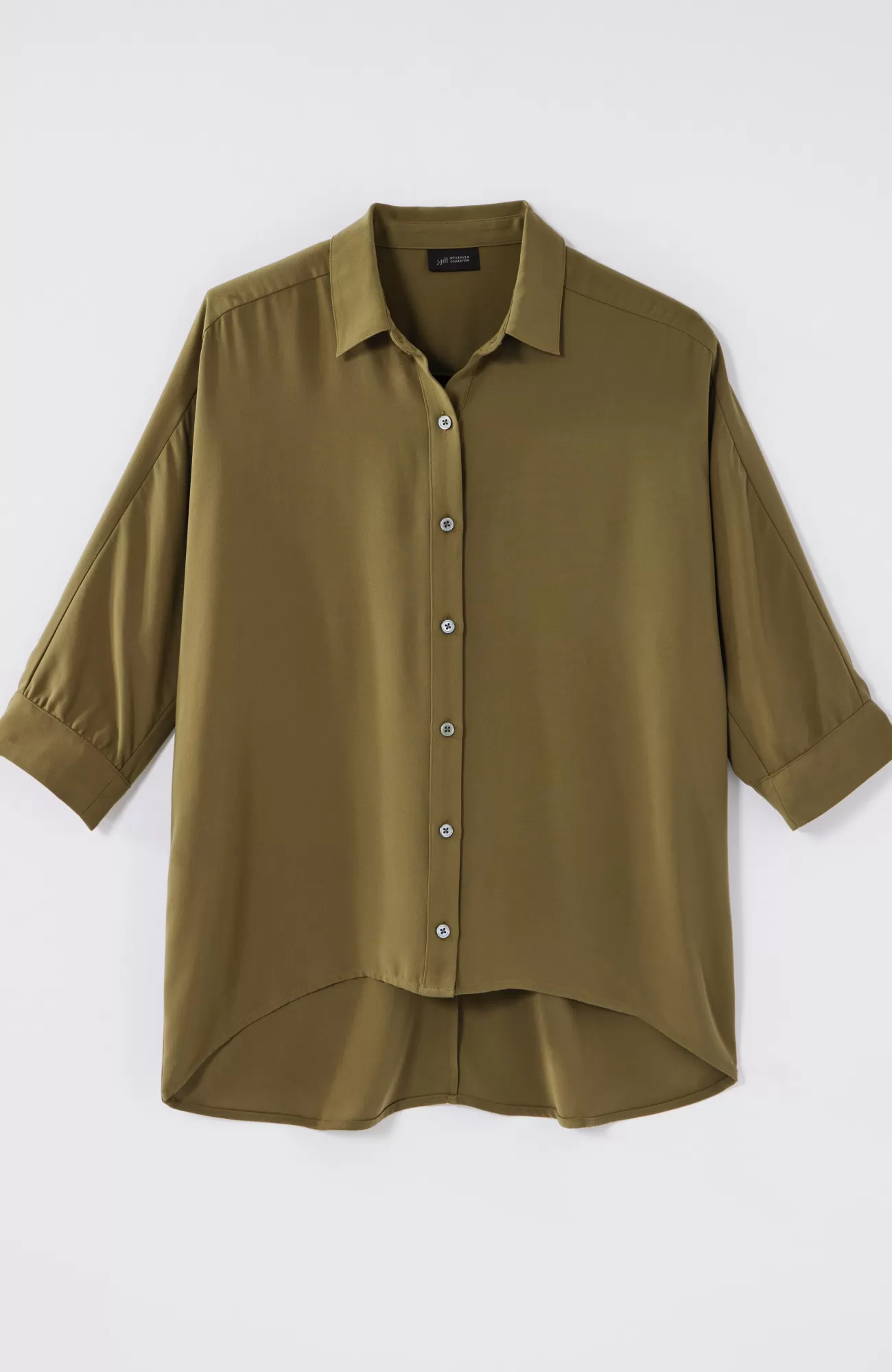 J.Jill Wearever Easy-Care High-Low Button-Down Spanish Olive Flash Sale