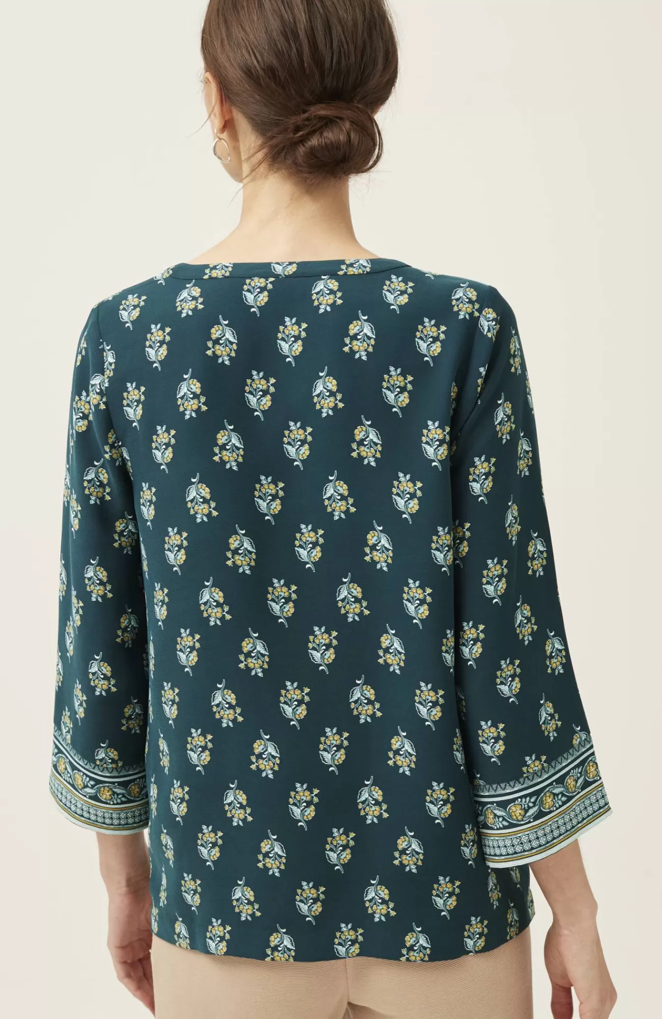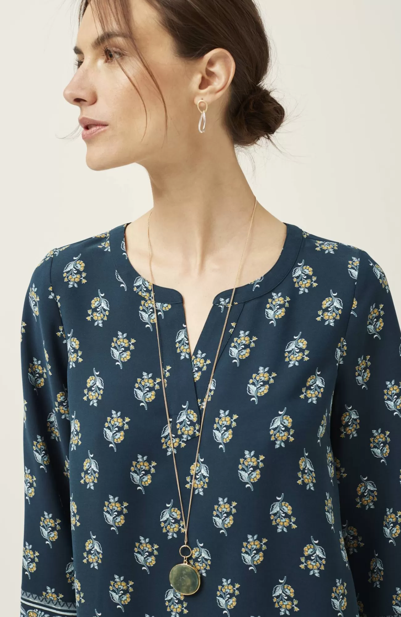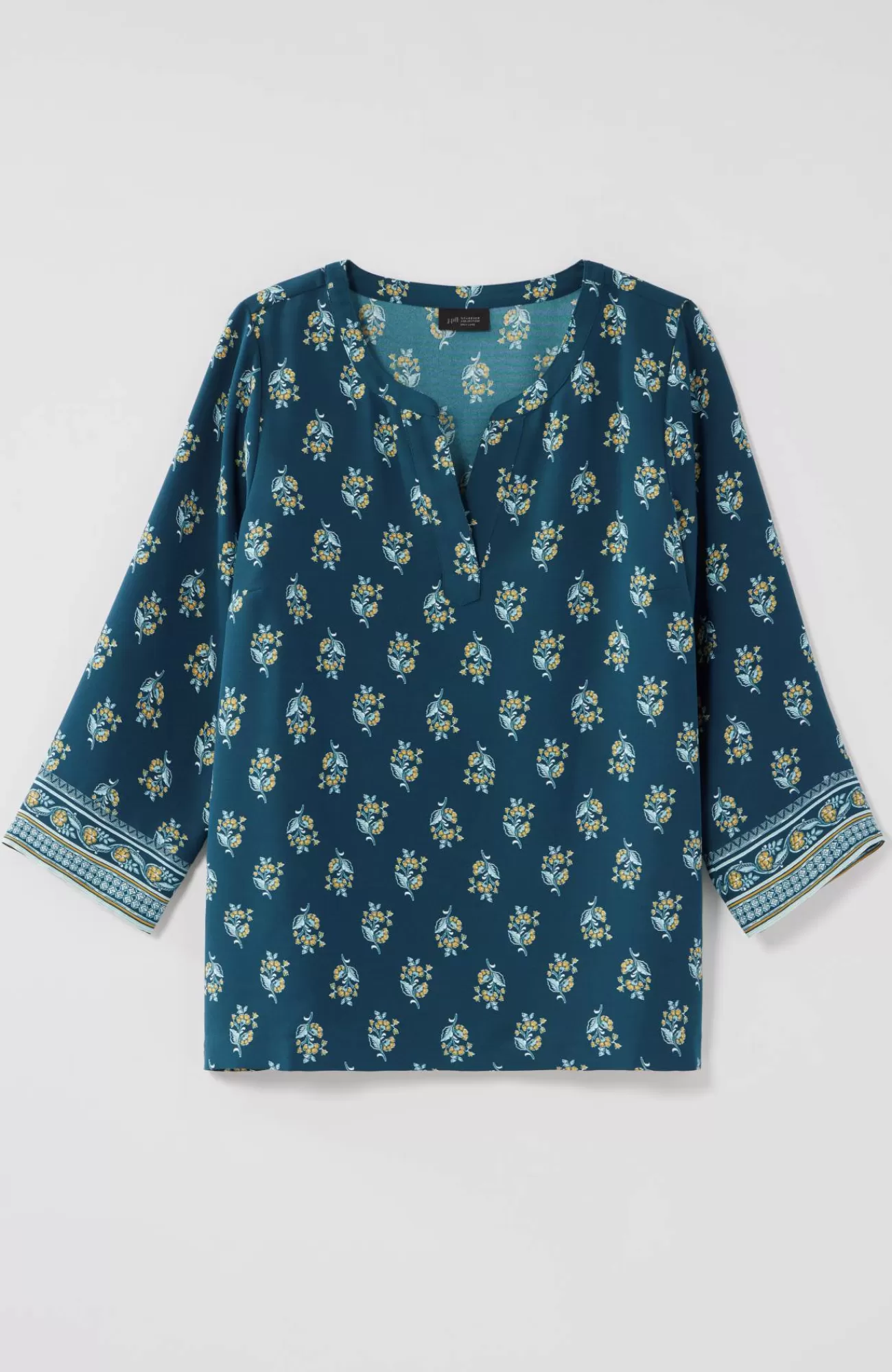 Designed in our woven easy-care fabric, our popover top has an effortless A-line shape with an allover floral print. We placed a border print at the sleeve cuffs for an extra-special touch. Split neckline.