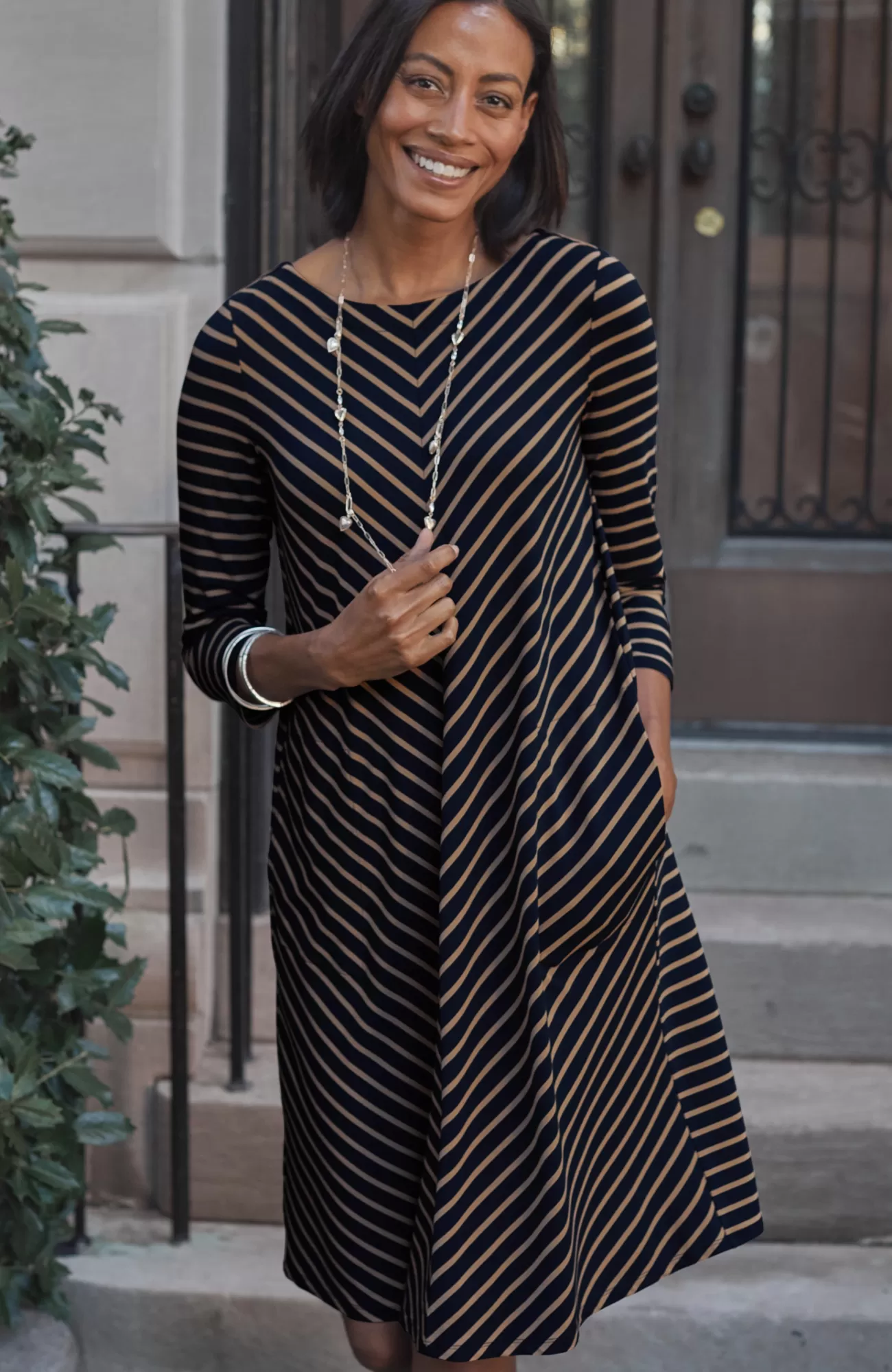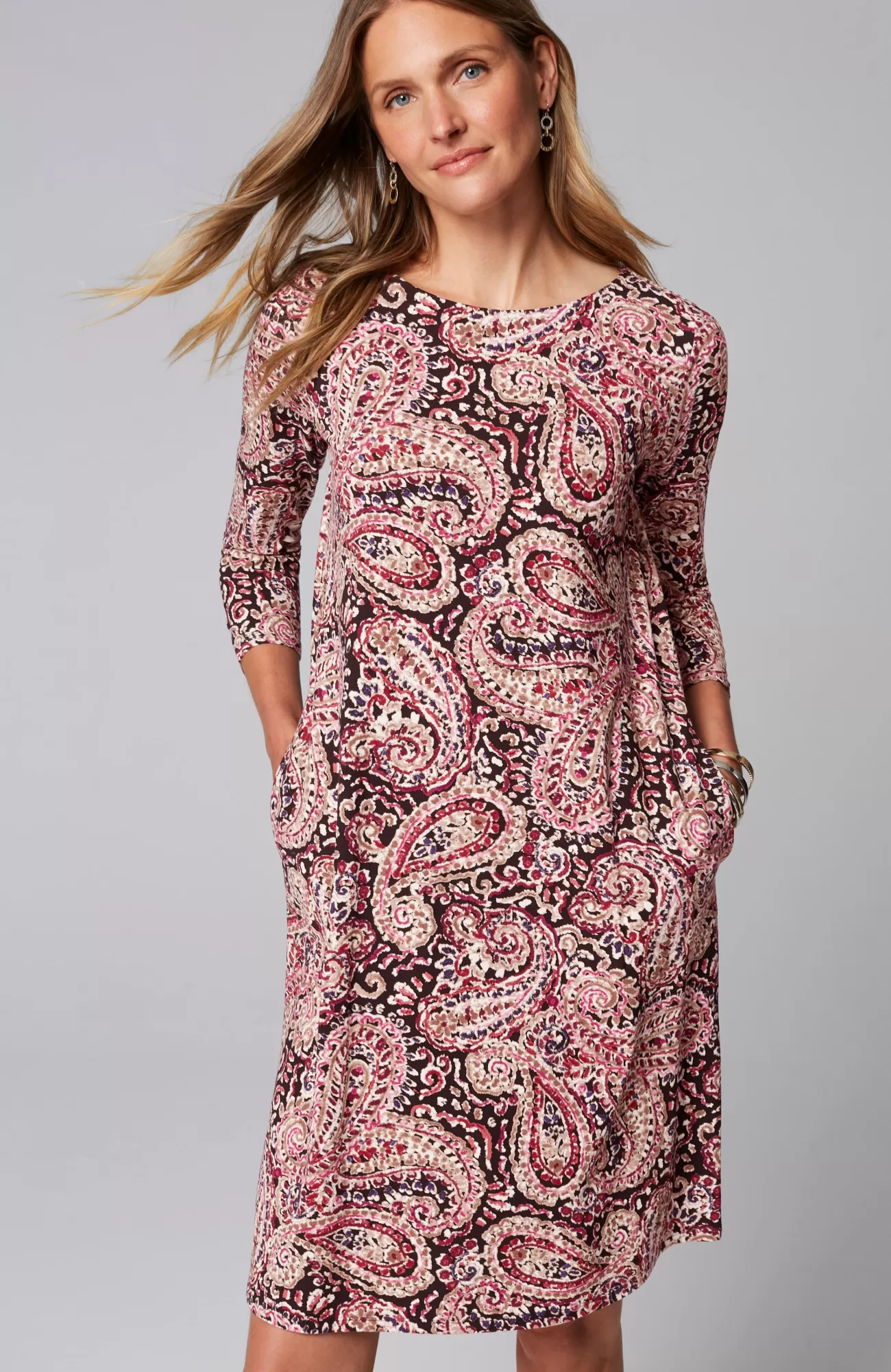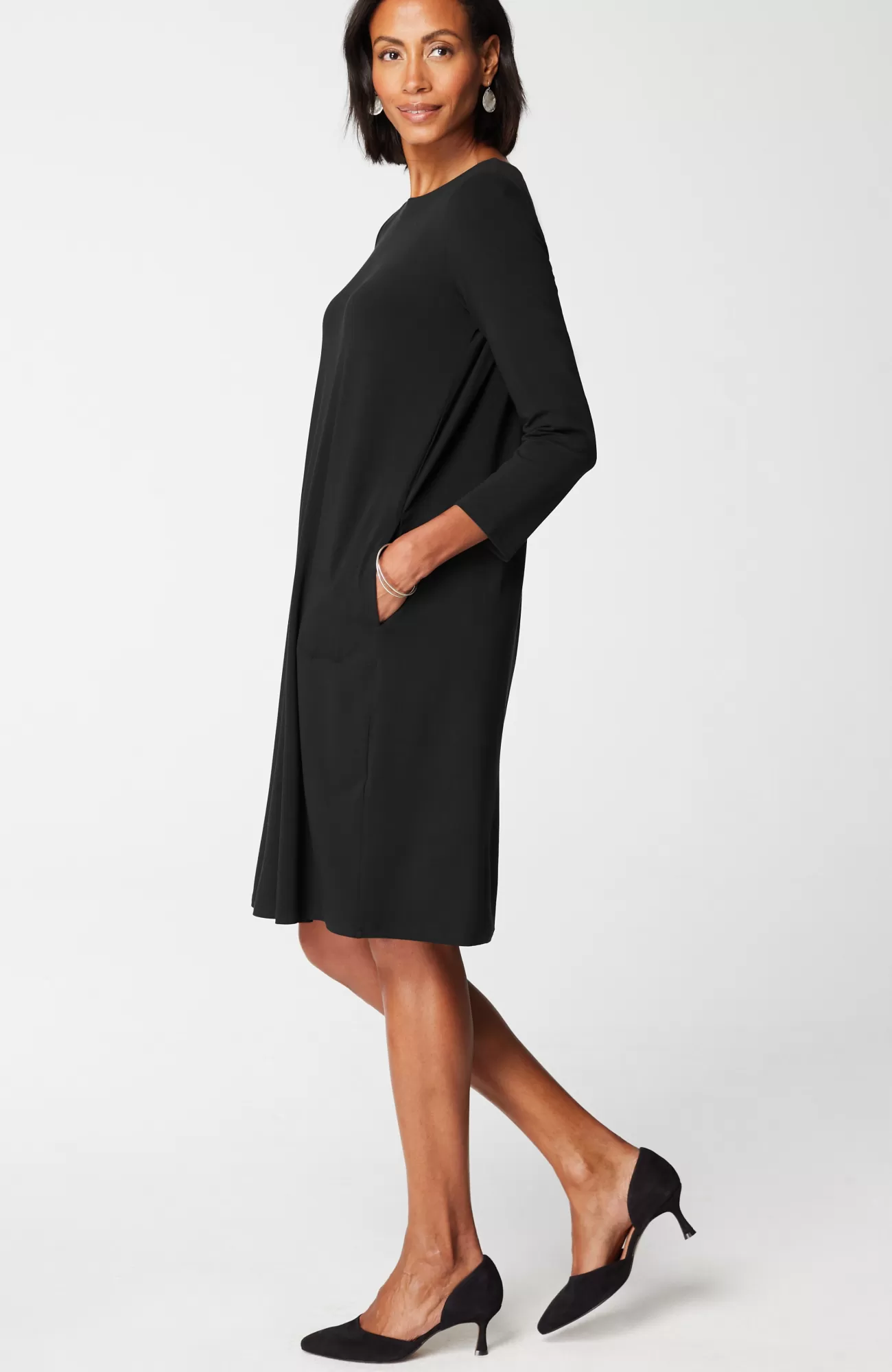 A classic A-line silhouette, thoughtfully placed back pleats and pockets—our knit dress is simply timeless. Made from soft LENZING™ ECOVERO™ Viscose fibers (plus a little Lycra® spandex for stretch). The manufacturing of LENZING™ ECOVERO™ Viscose fibers generates up to 50% lower emissions and water impact compared to generic viscose. Unlined.