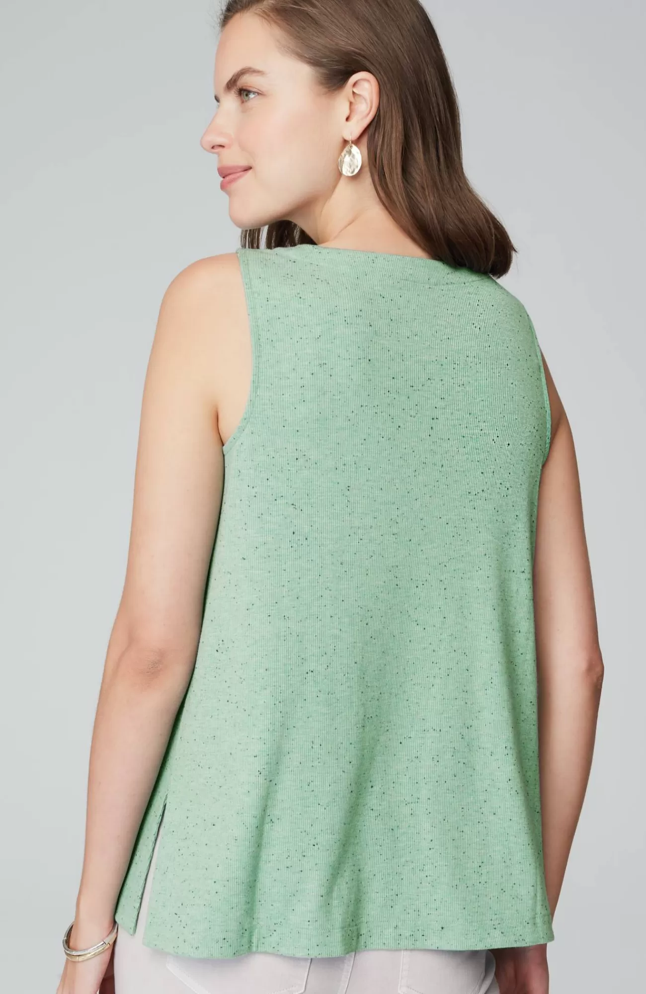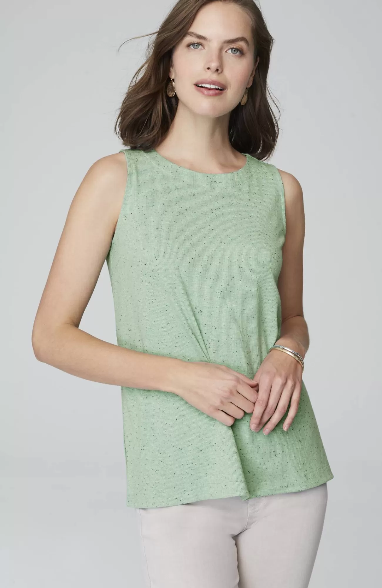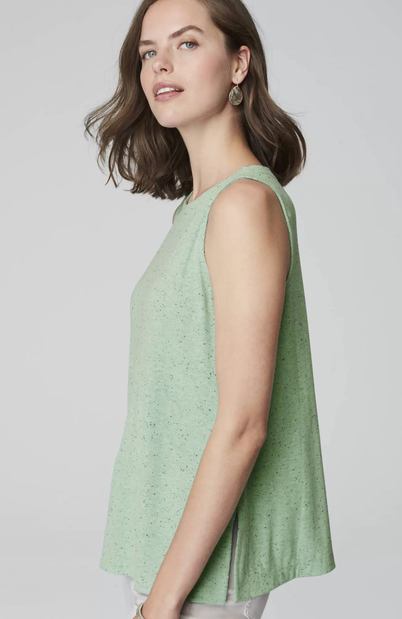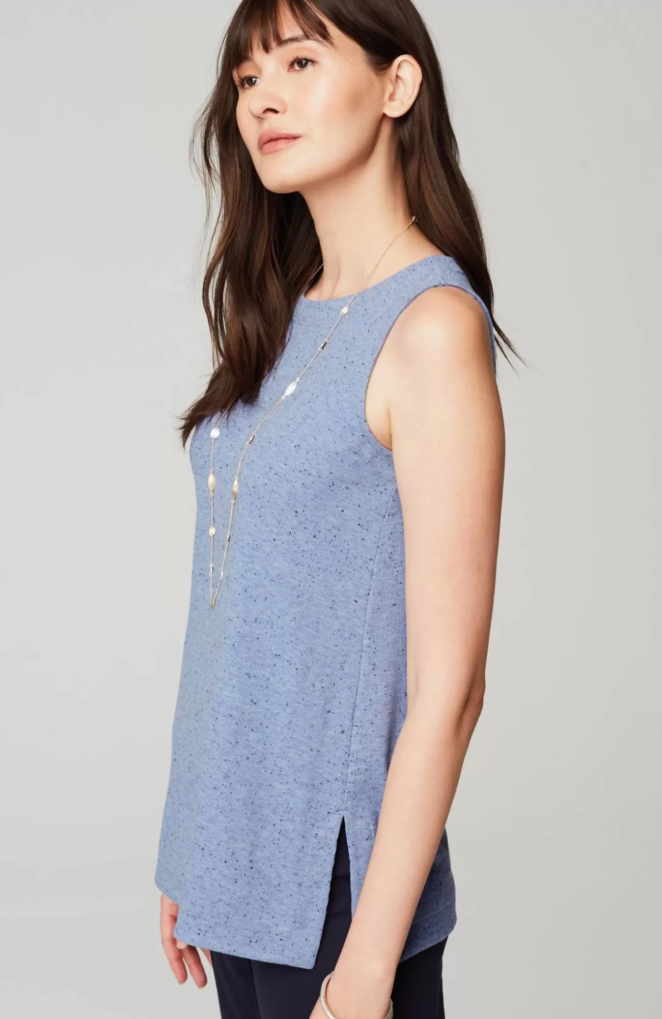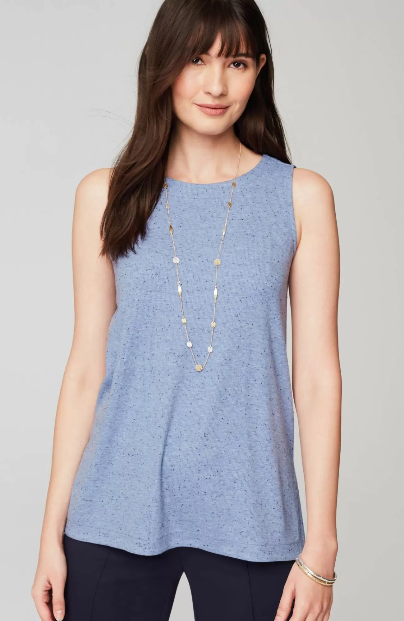 Our soft knit tank is a versatile wardrobe essential. Layer it under your favorite cardis, jackets and shirts. Crew neckline. Side vents. The seamed option has a striped panel for extra panache. Effortlessly packable knit style. Made from soft European yarns.