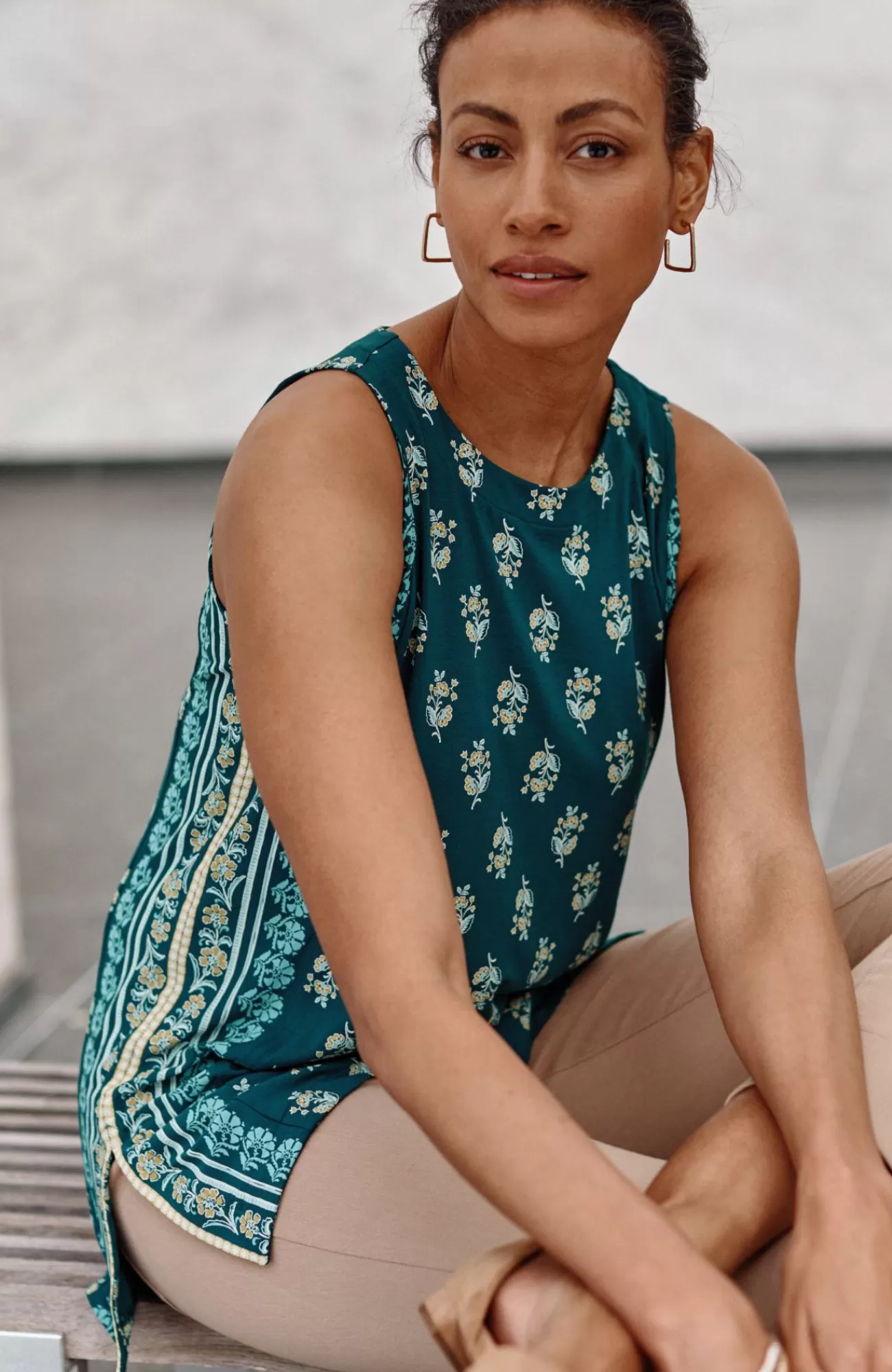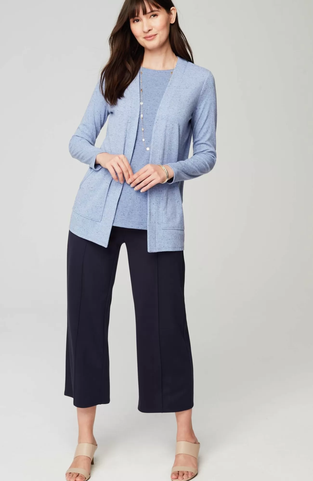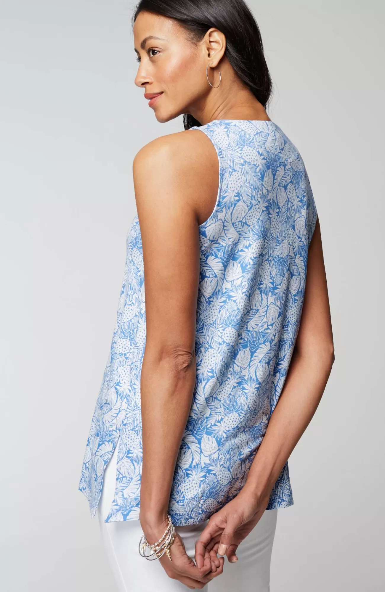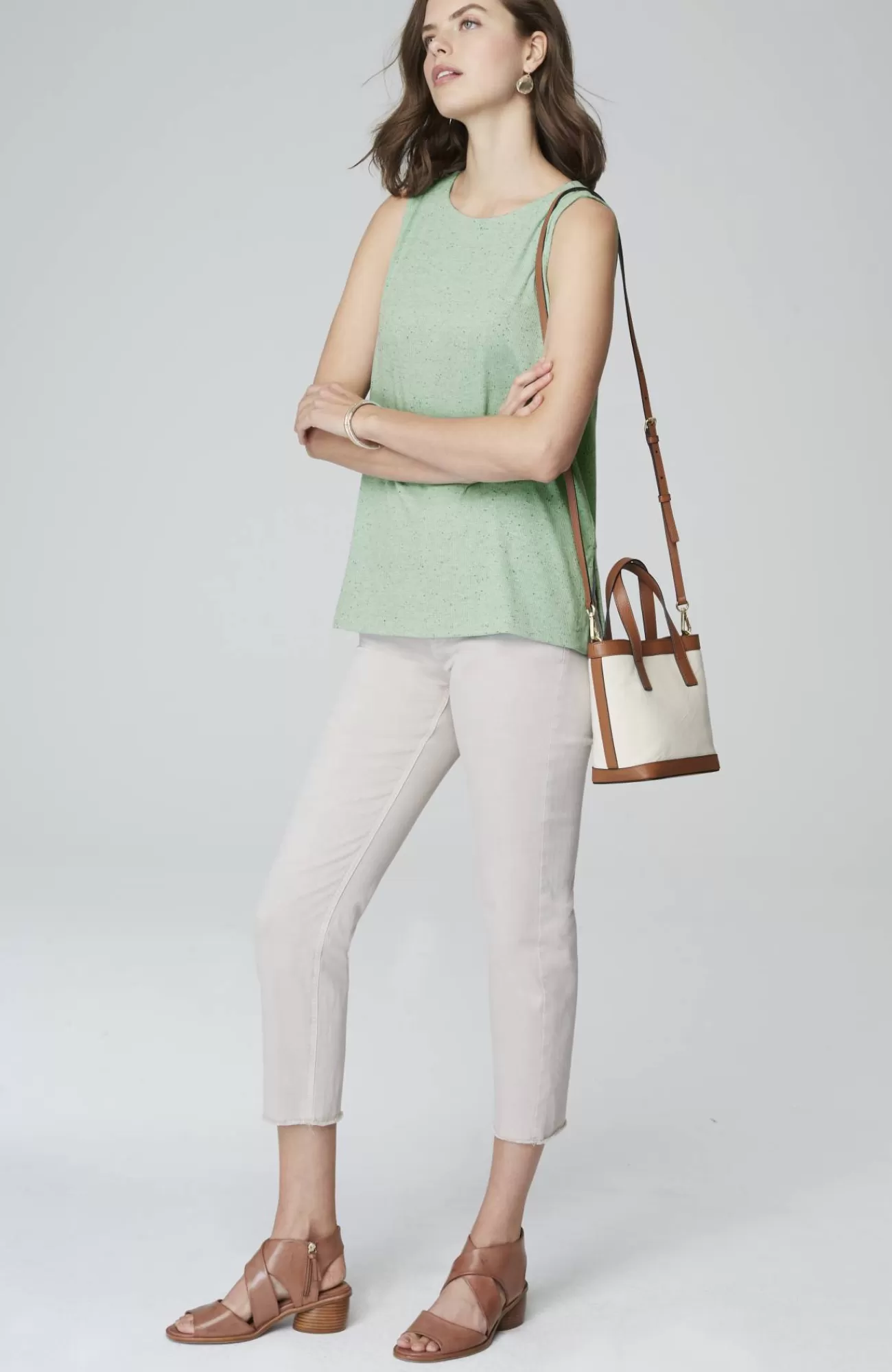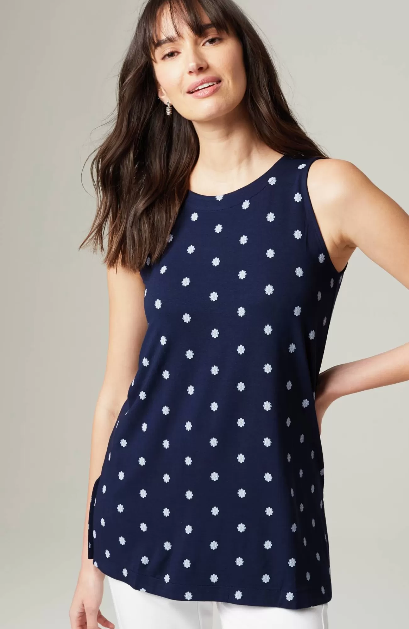 Our soft knit tank is a versatile wardrobe essential. Layer it under your favorite cardis, jackets and shirts. Crew neckline. Side vents. The seamed option has a striped panel for extra panache. Effortlessly packable knit style. Made from soft European yarns.