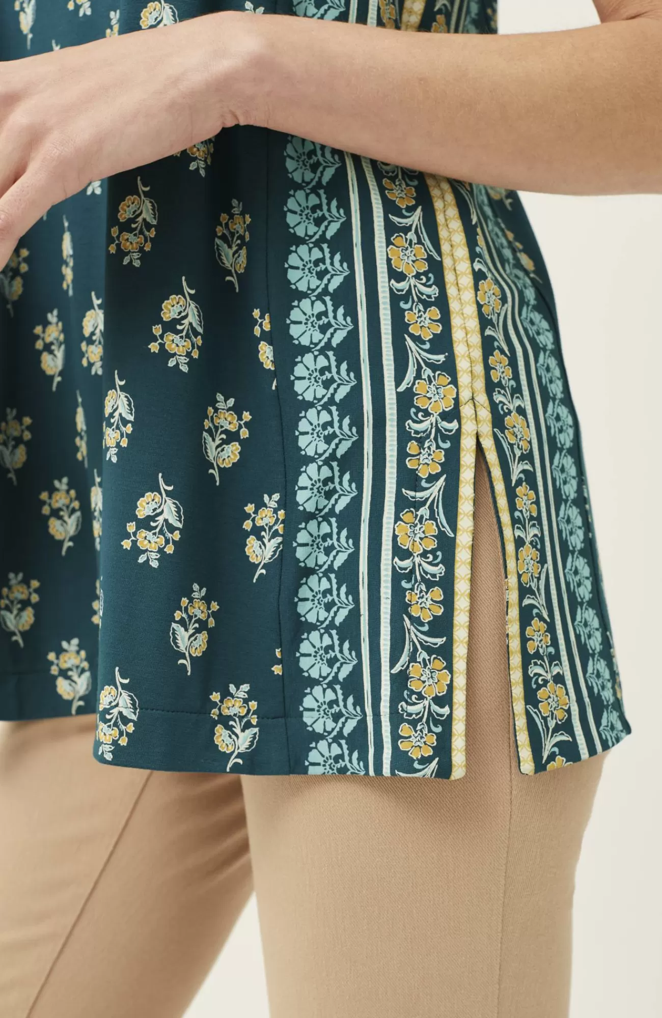 - Low-hip length: R 28" center back, P 26½" center back, T 29½" center back