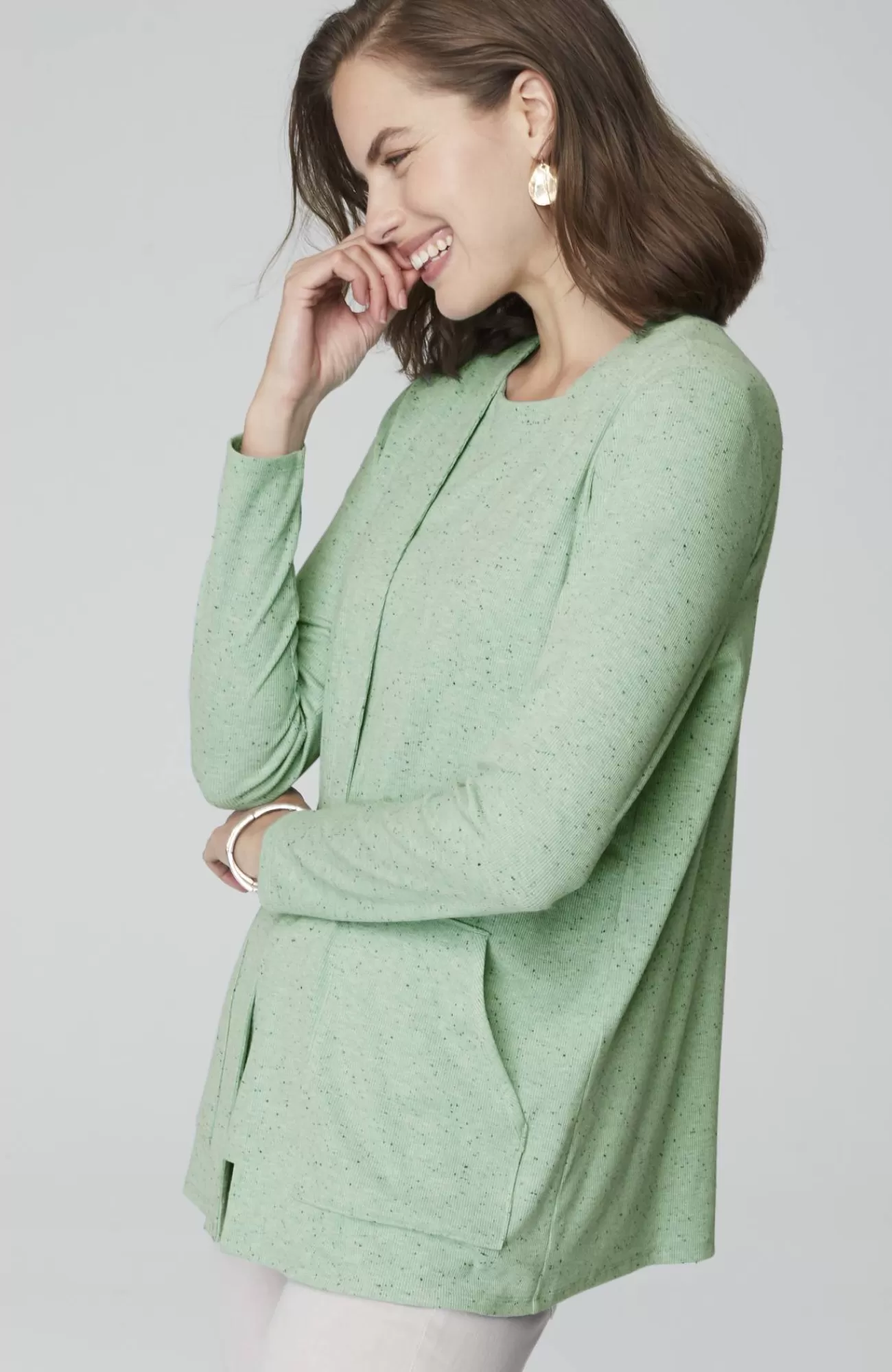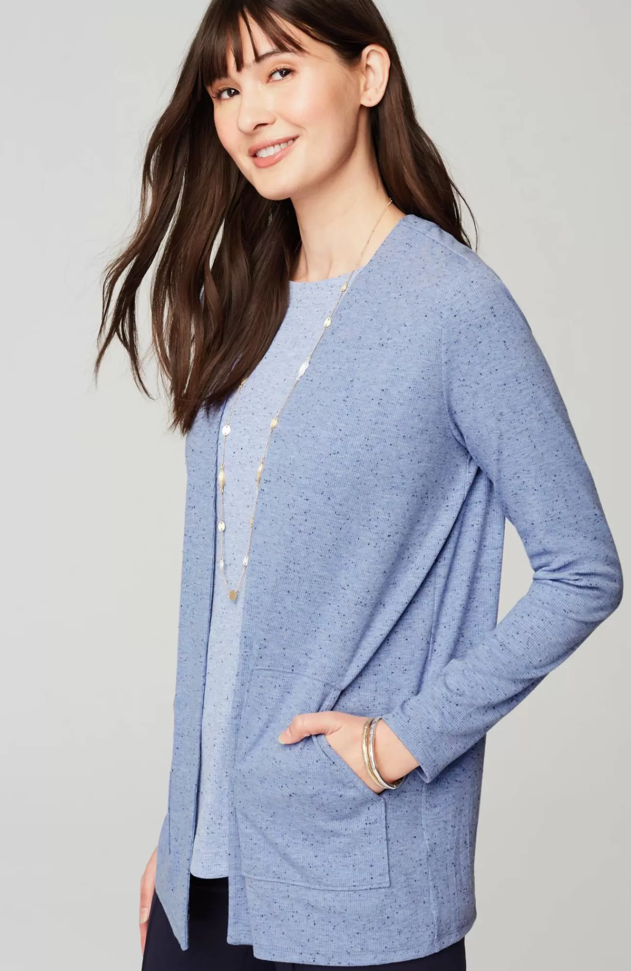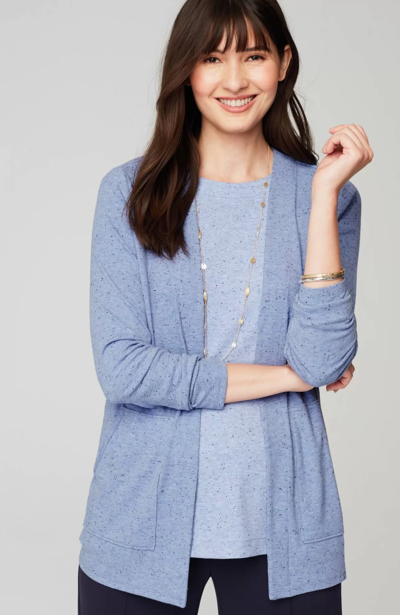 The ease of an open-front cardi meets the warmth of a jacket (with extra-cozy marled texture). Designed with pockets, of course.