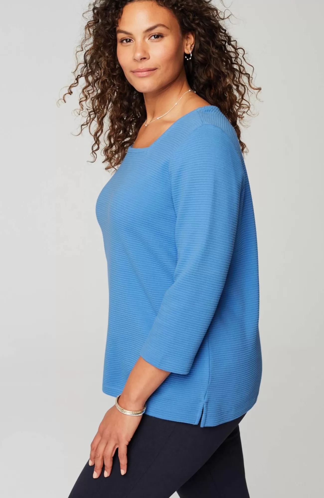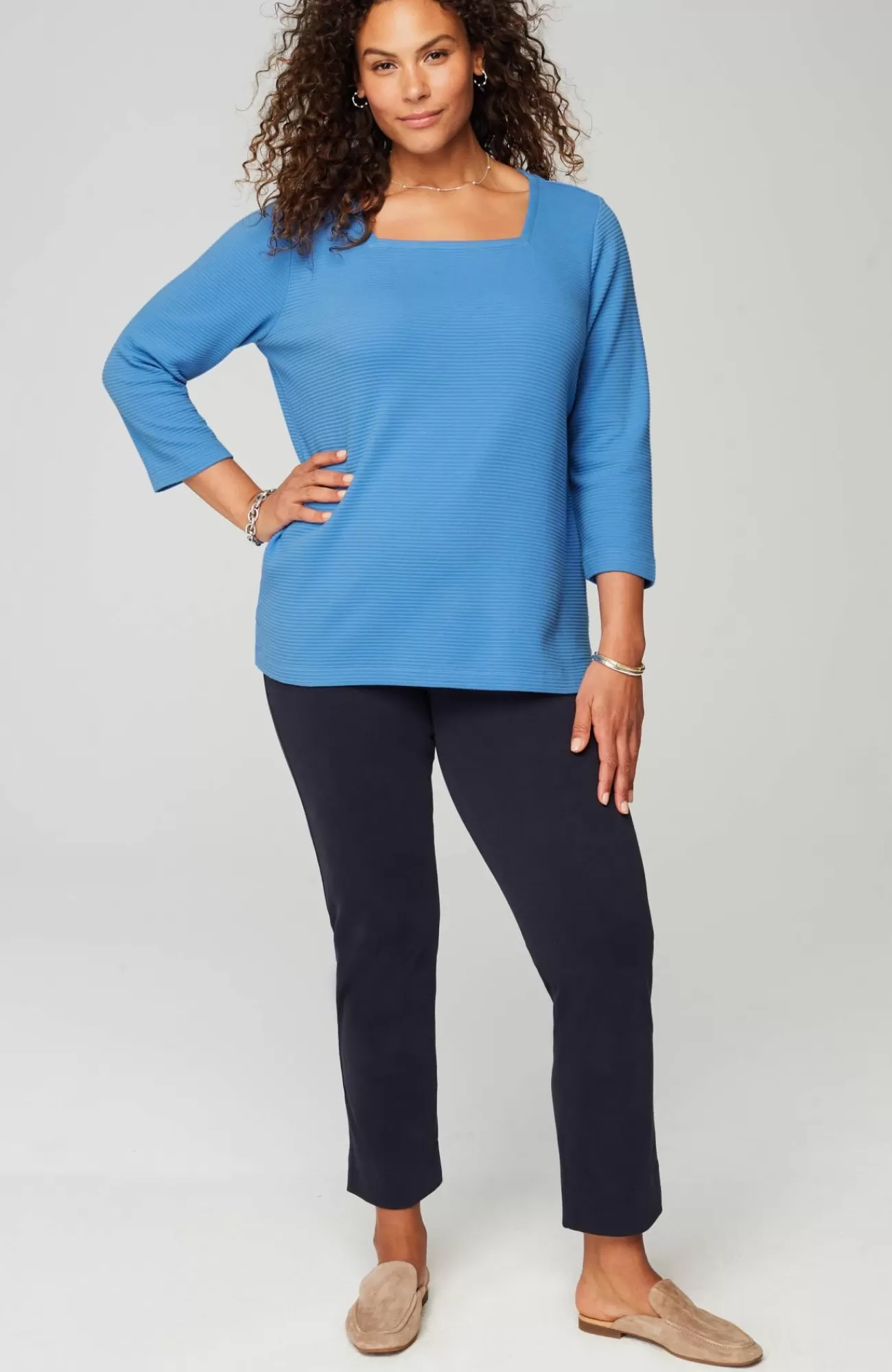 The ultimate between-seasons top. Designed in soft, textured ottoman fabric and finished with a modern square neckline and breezy side vents.