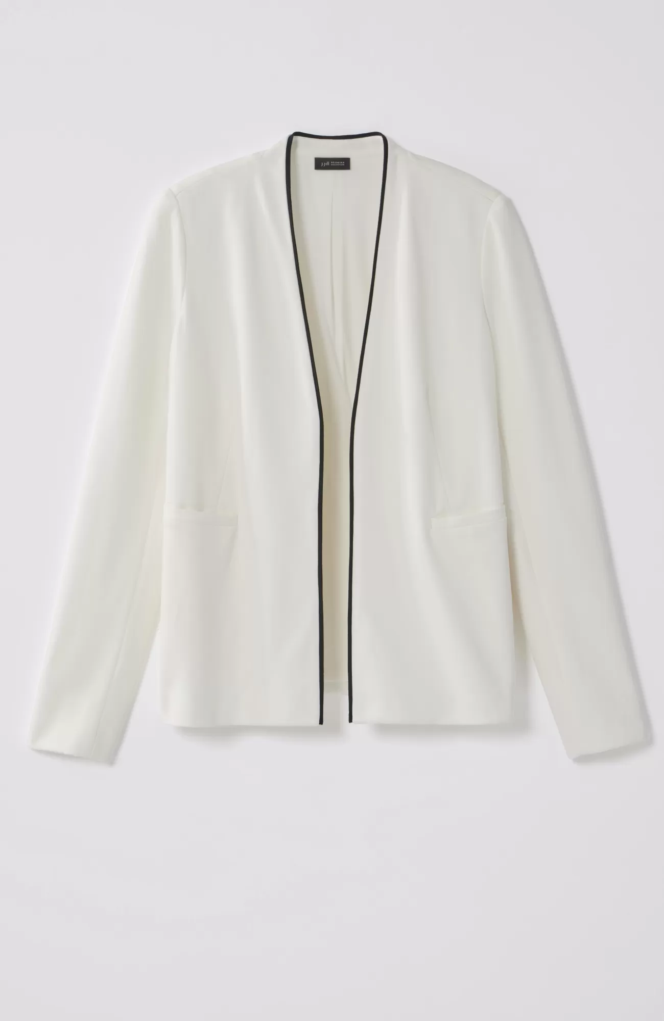 Timeless and tailored, our open-front knit blazer transcends trends with a classic cut, welt pockets and contrasting piped trim. Fully lined.
