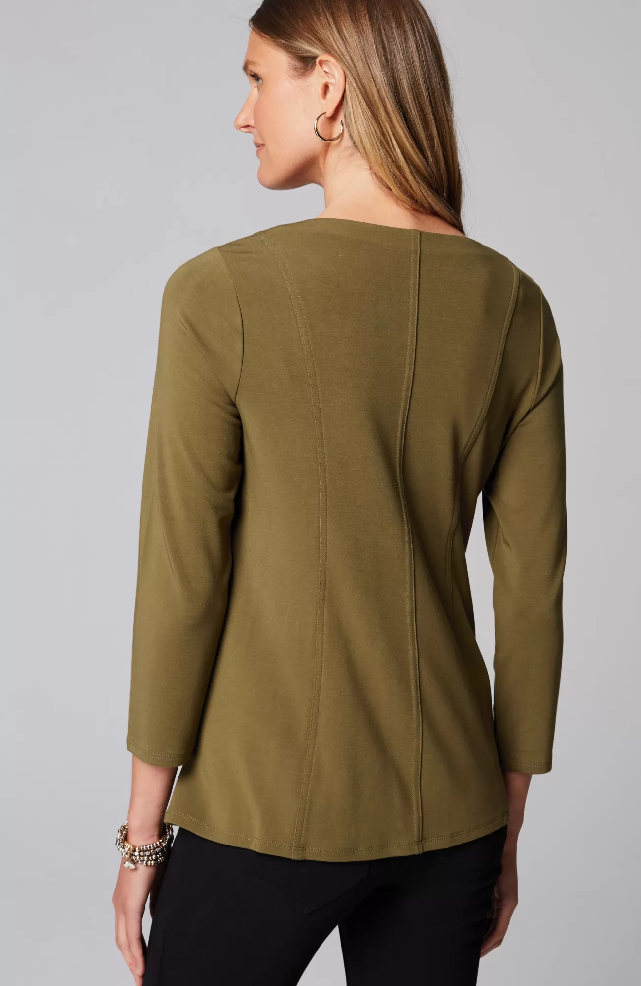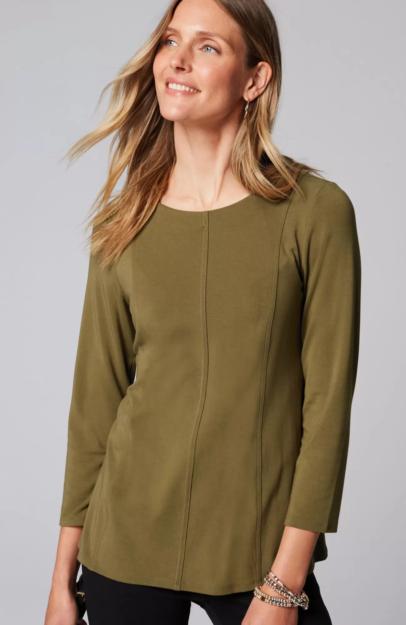 Designed with a slight peplum flare, our seamed top is the sweet spot between playful and put together. It’s made in our smoothest, softest knit fabric that drapes like a dream. Crew neckline.