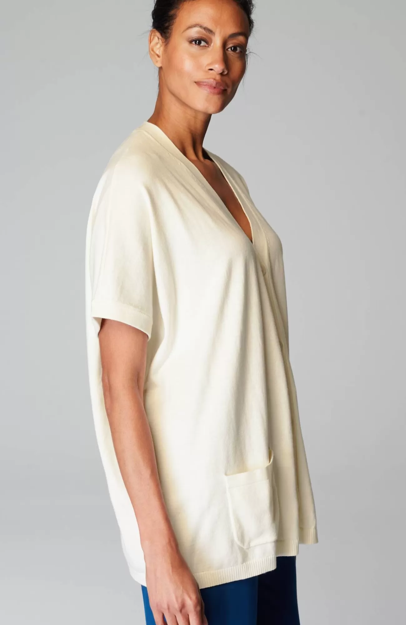 If spring designed a cardigan—here in a lightweight fine-gauge knit that's made for layering, with short, chic dolman sleeves, ribbed trim and patch pockets. Worthy of the most accessible spot in your wardrobe—this is one we reach for again and again.