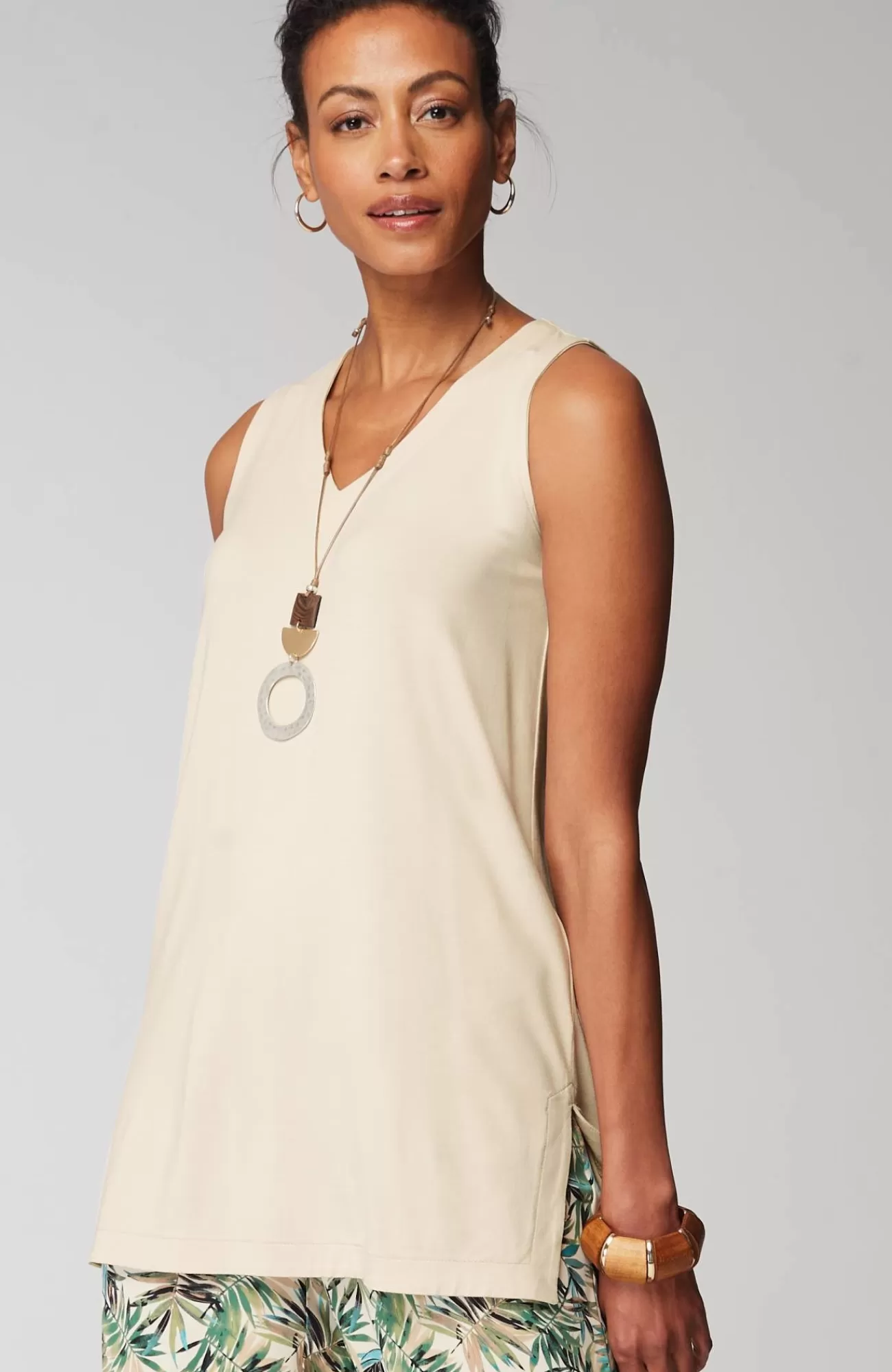 Introducing the start to all your favorite outfits. Our tunic is made to love and layer, with a timeless shape, longer length and comfortable hint of stretch. Finished with breezy side vents.