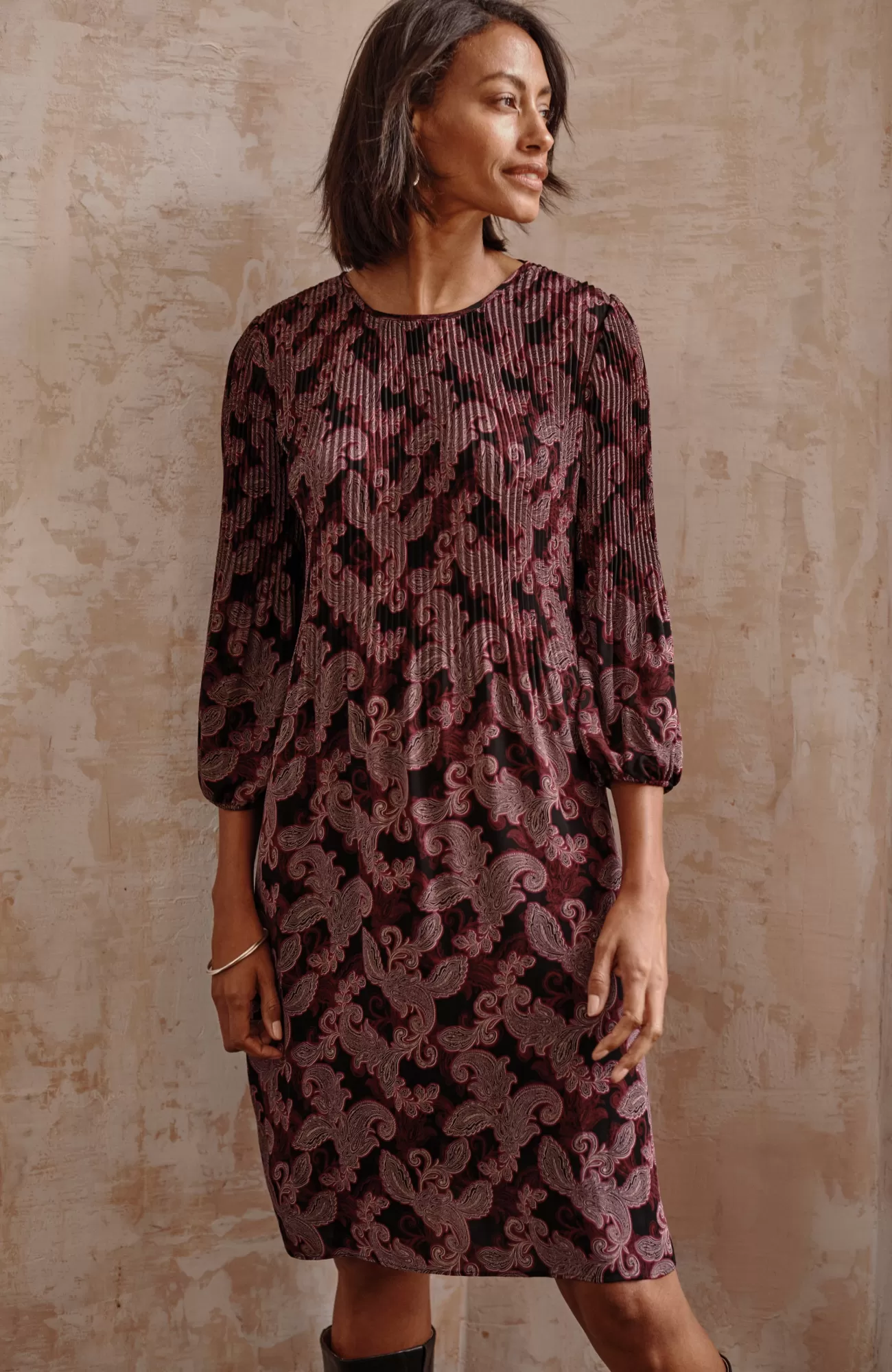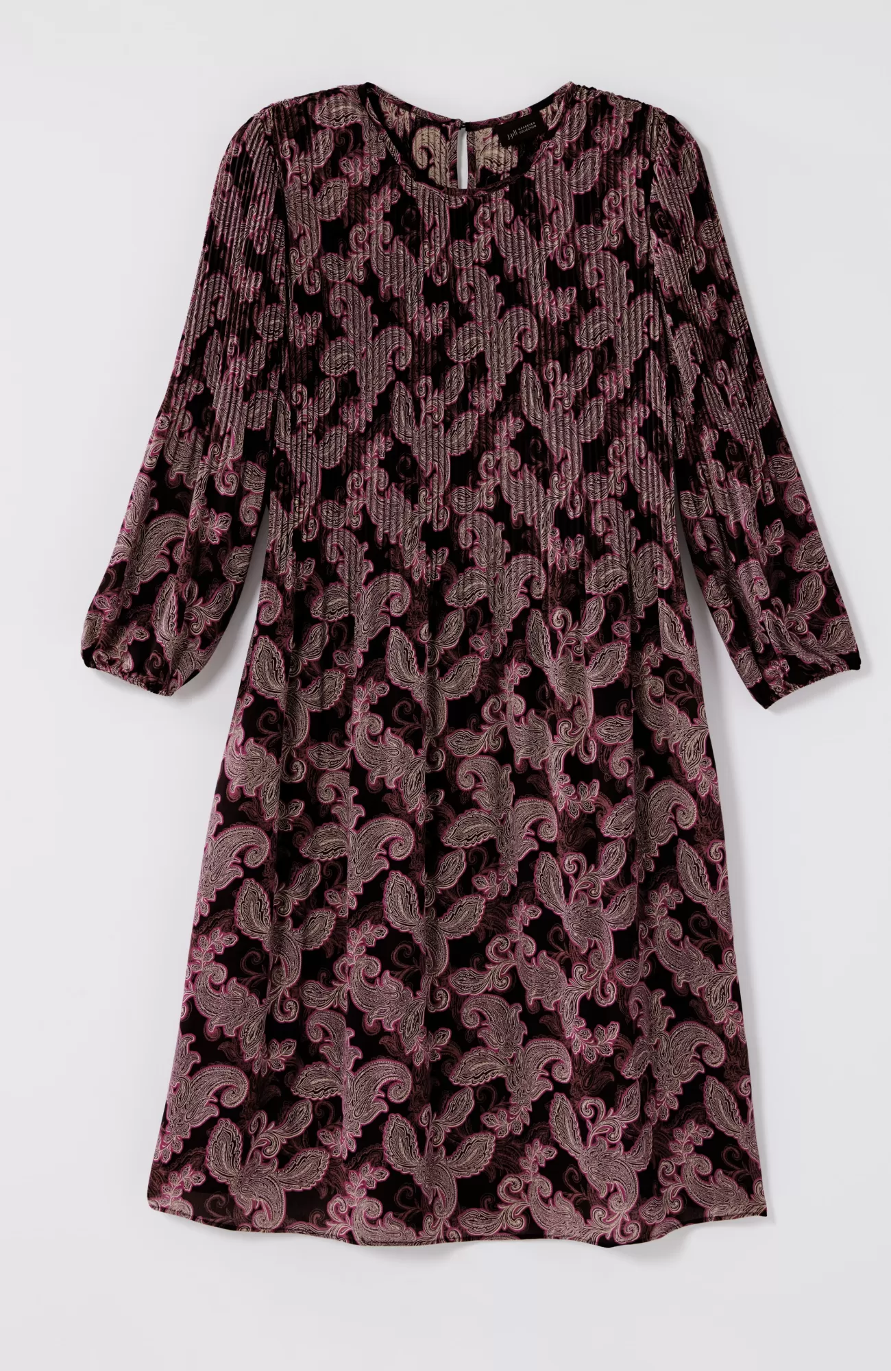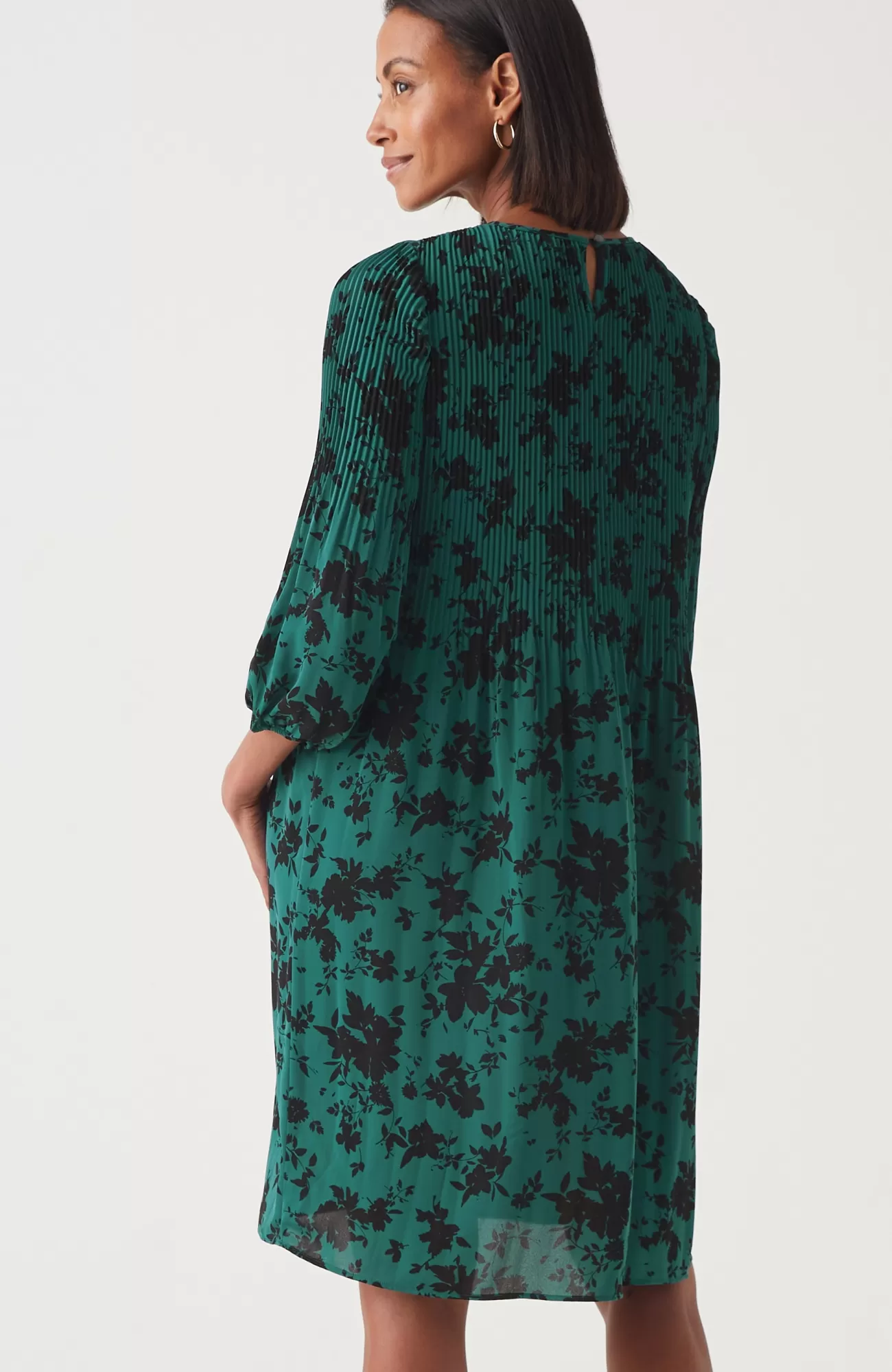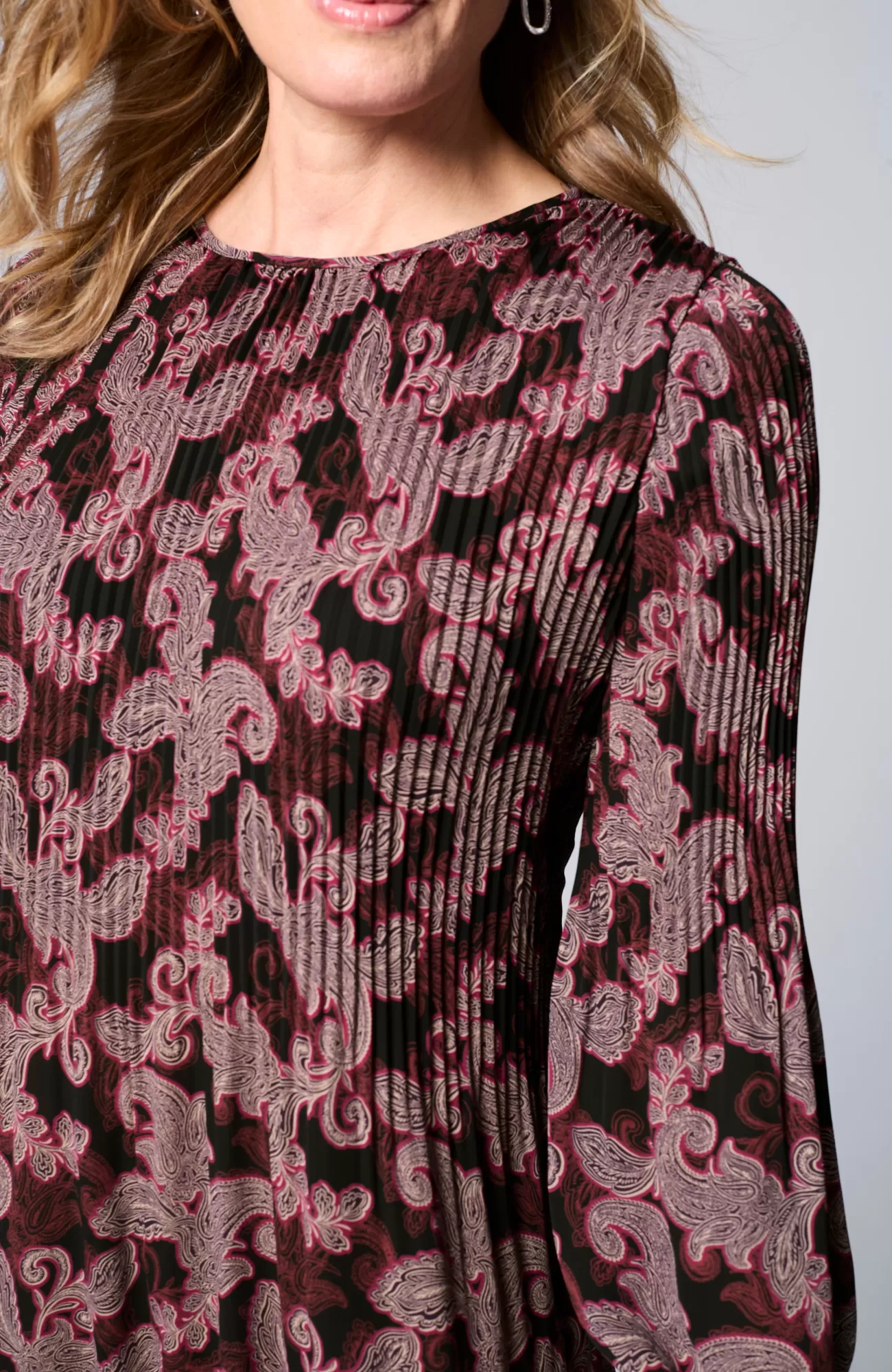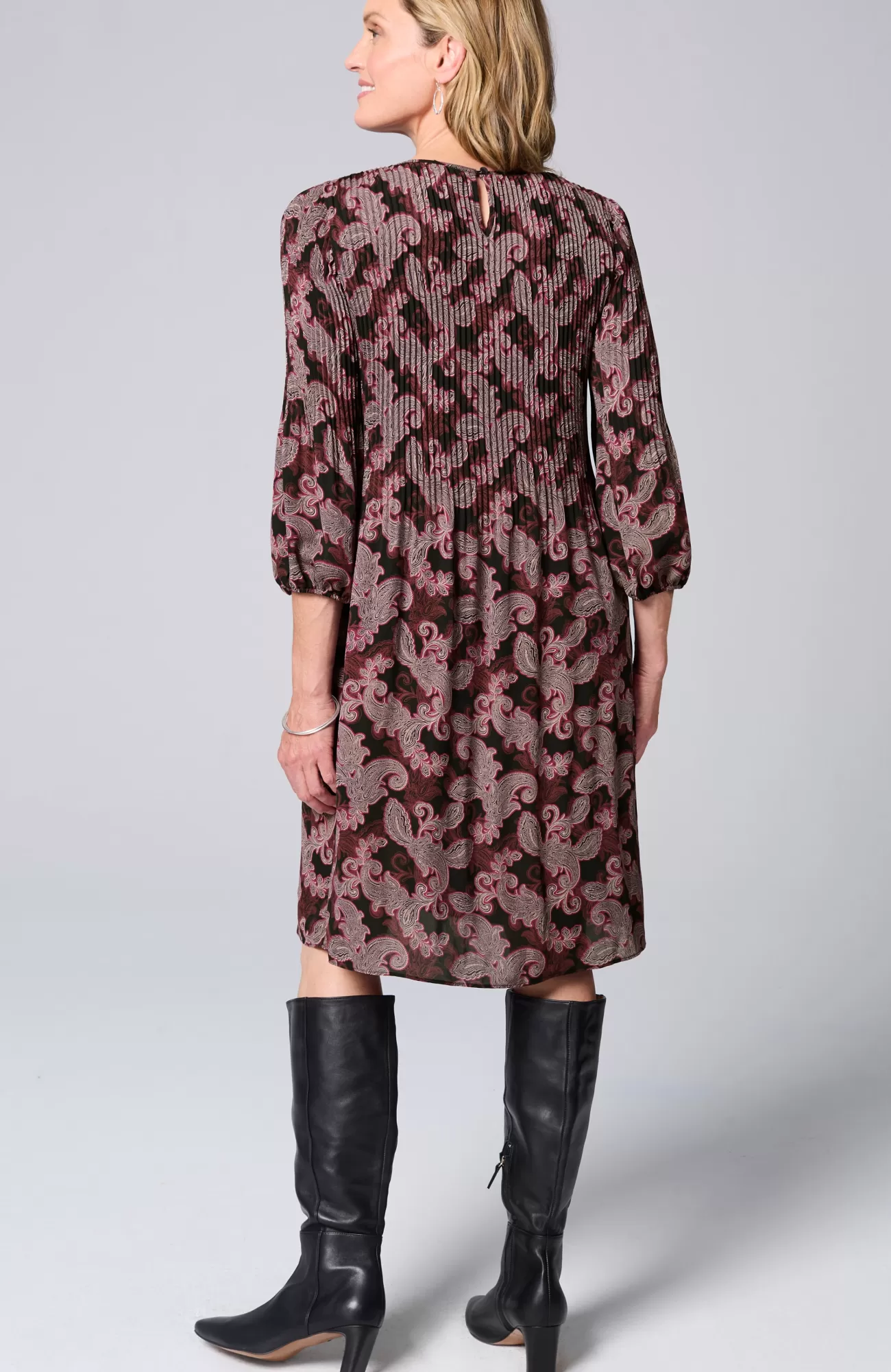 J.Jill Wearever Sunburst-Pleated Dress Black Plum Illuminated Paisley Best