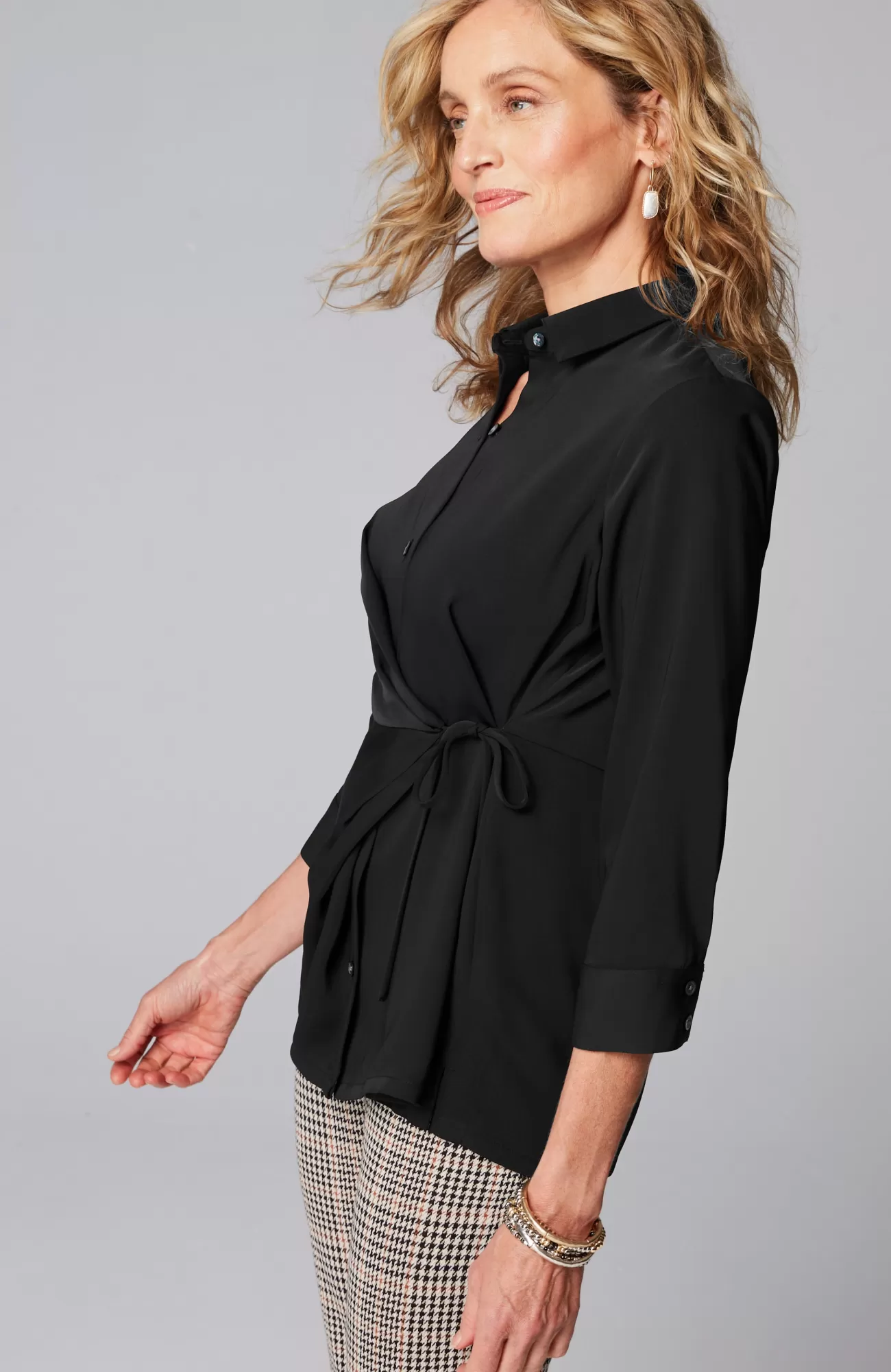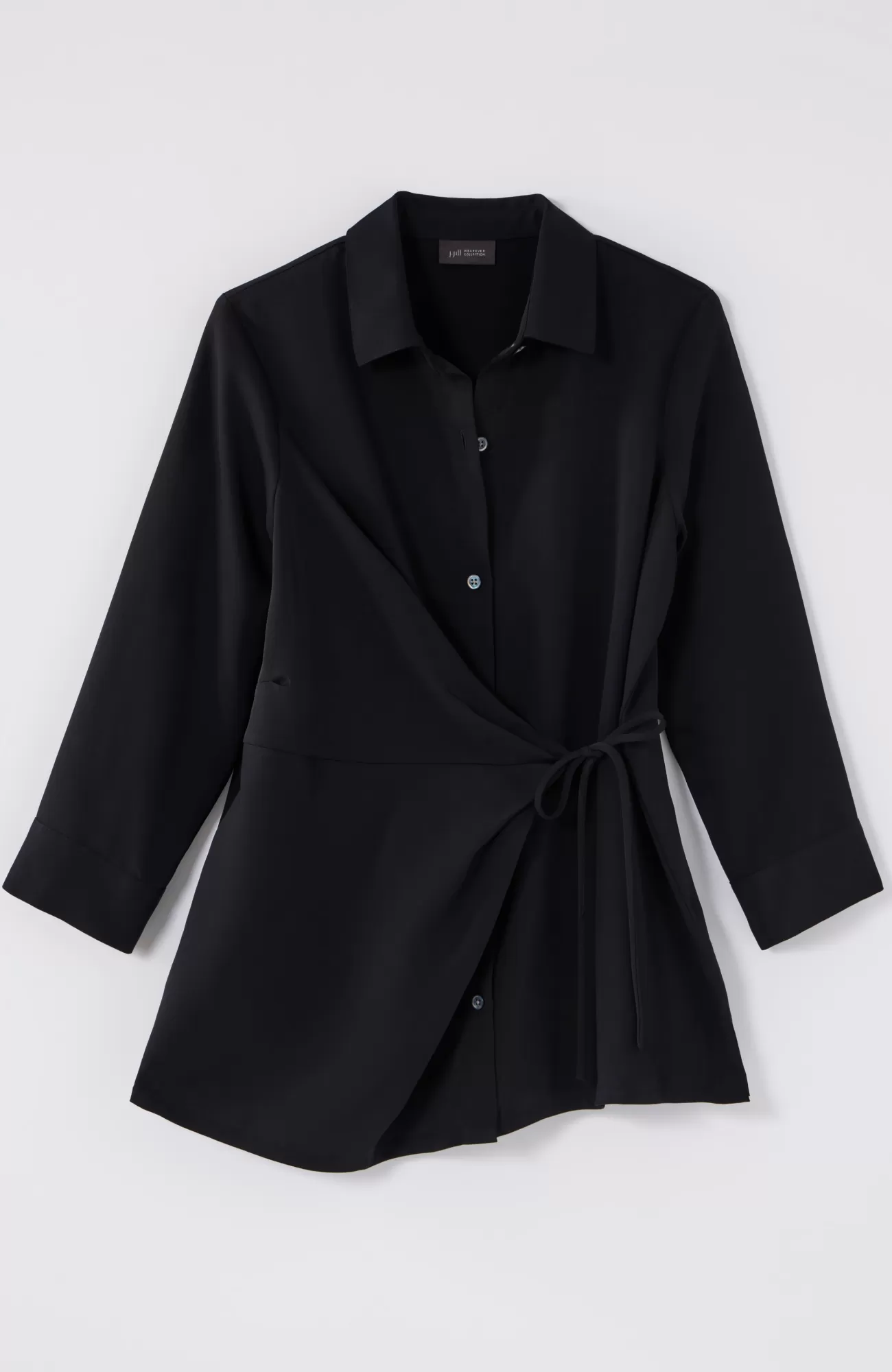 A dressier spin on the button-front shirt, this piece features a self-tie at the side and an elasticized back waist for a fit that’s guaranteed to flatter. Shirt collar. Buttoned cuffs. Side vents. Catalog & Online Exclusive.
