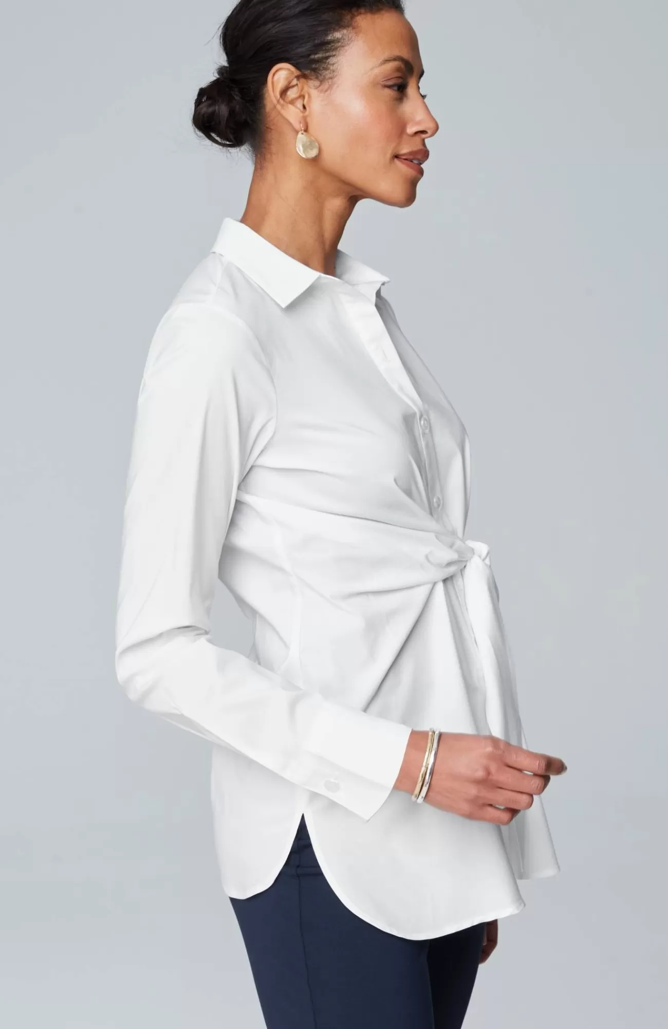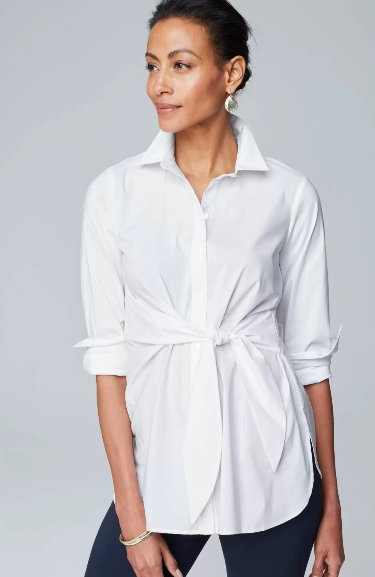 The button-down with a new spring perspective. Designed with classic details and elevated with a flattering twist and tie at the front. Catalog & Online Exclusive.