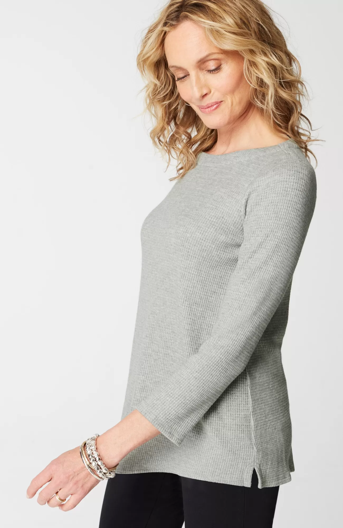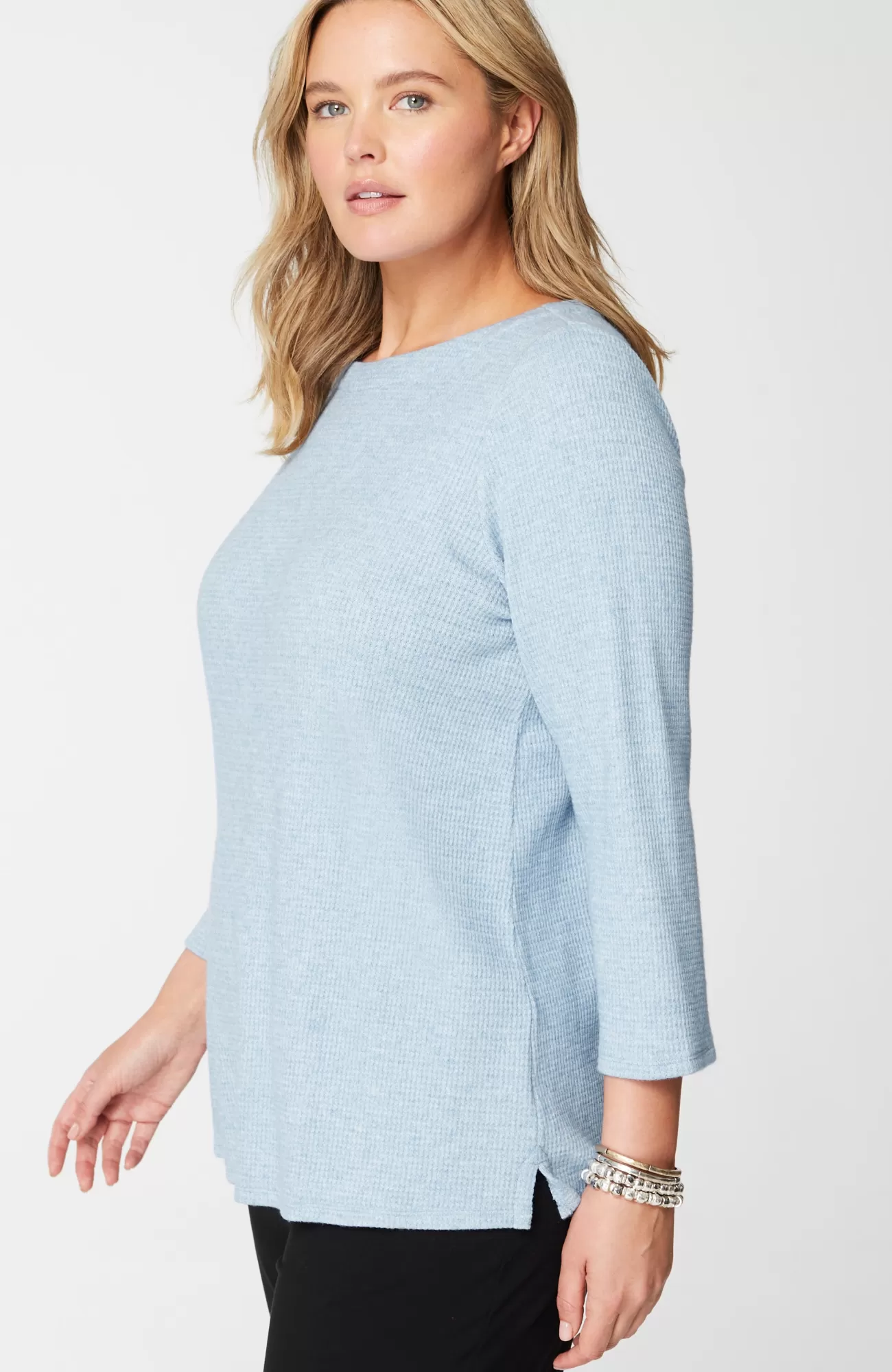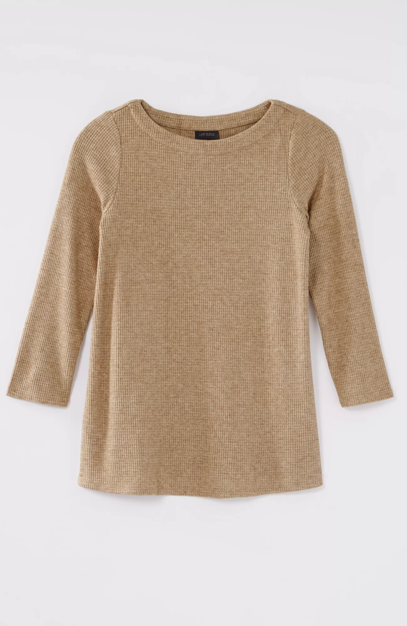 Our best-selling waffle-knit fabric makes a comeback this fall in a soft, feminine top with a classic boat neckline. We've added side slits at the hem for some free-spirited swing. It’s a lightweight take on cozy to take you into sweater season.