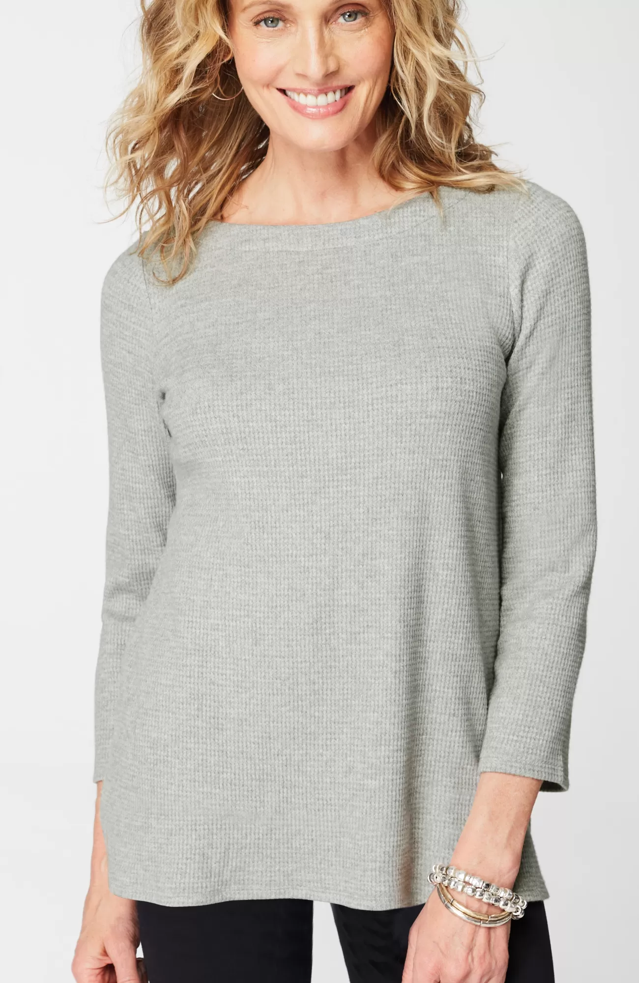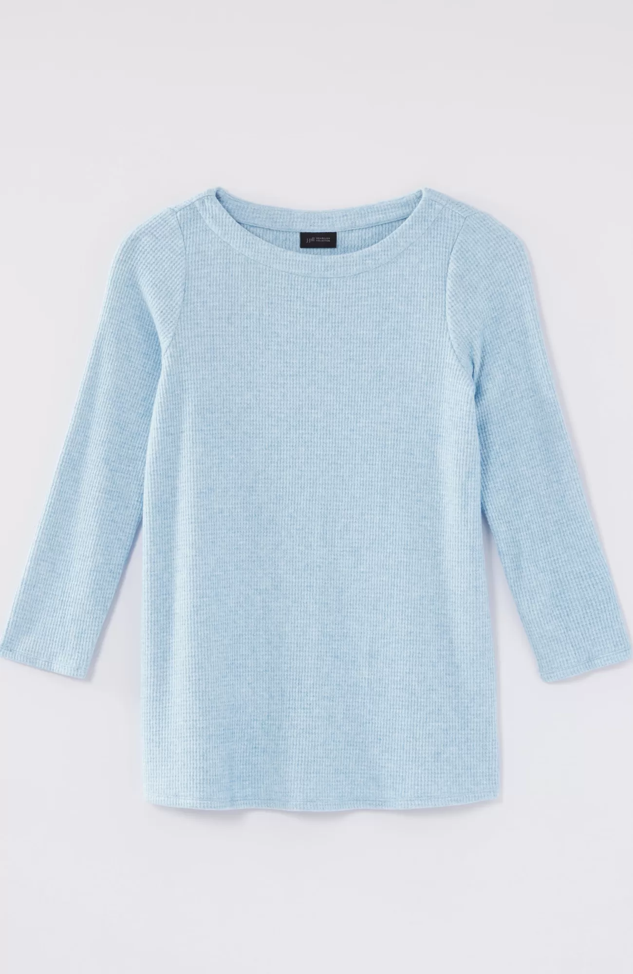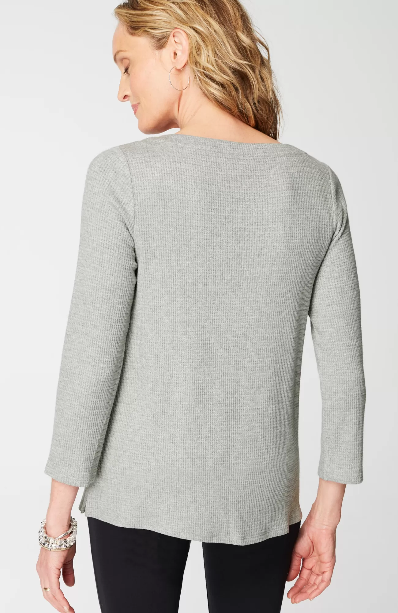 Our best-selling waffle-knit fabric makes a comeback this fall in a soft, feminine top with a classic boat neckline. We've added side slits at the hem for some free-spirited swing. It’s a lightweight take on cozy to take you into sweater season.